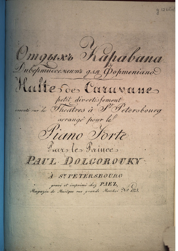 | Alternative. Title | Otdykh karavana. Divertissement dlia fortepiano. Halte de Caravane petit divertissement execute sur les Theatres a St Petersbourg |