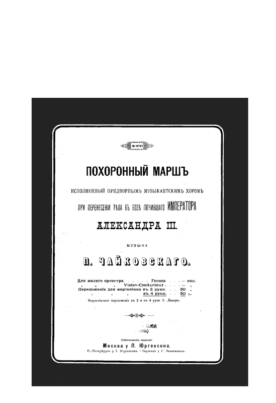 Marche Funèbre exécutée par l'orchestre de la Cour Impériale pendant les funérailles de S.M. l'Empereur Alexandre III.
