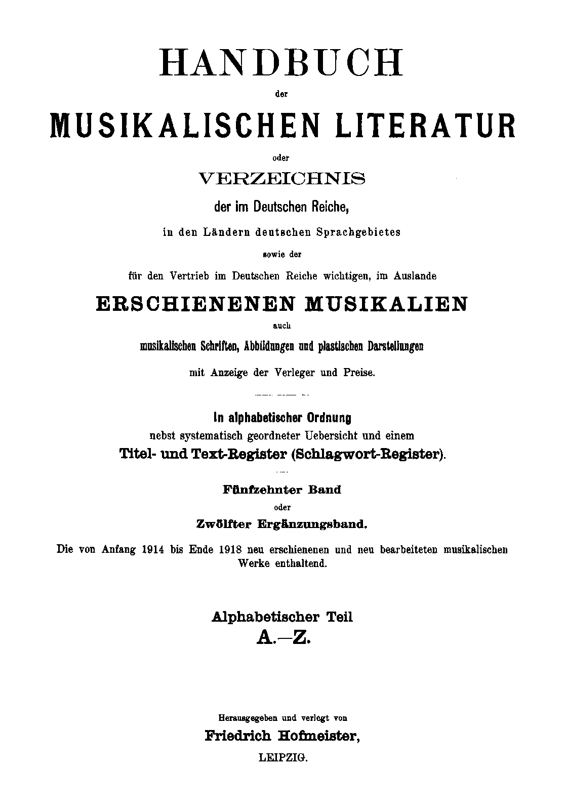 ⇒ 4 more: Alphabetic Listing: Göring to May • Alphabetic Listing: May to Seidl • Alphabetic Listing: Seidl to Z, Appendix • Systematic Listing
