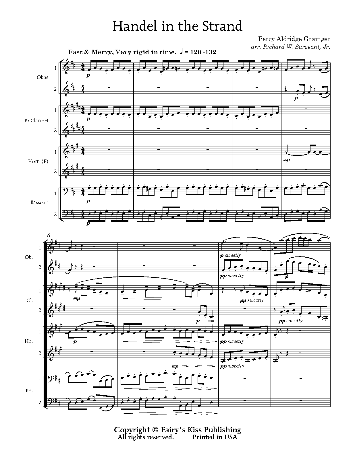 For 2 Oboes, 2 Clarinets, 2 Bassoons and 2 Horns (Sargeant)
