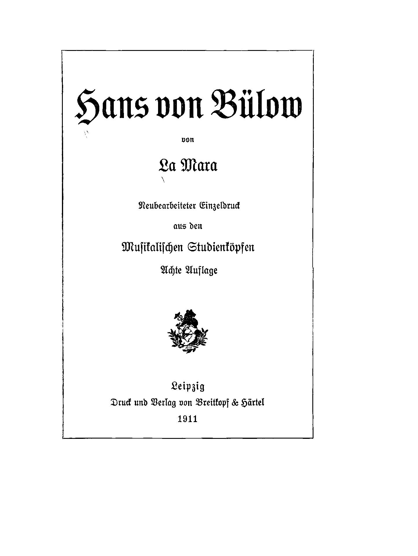 Hans von Bülow : Neubearbeiteter Einzeldruck aus den Musikalischen Studienköpfen