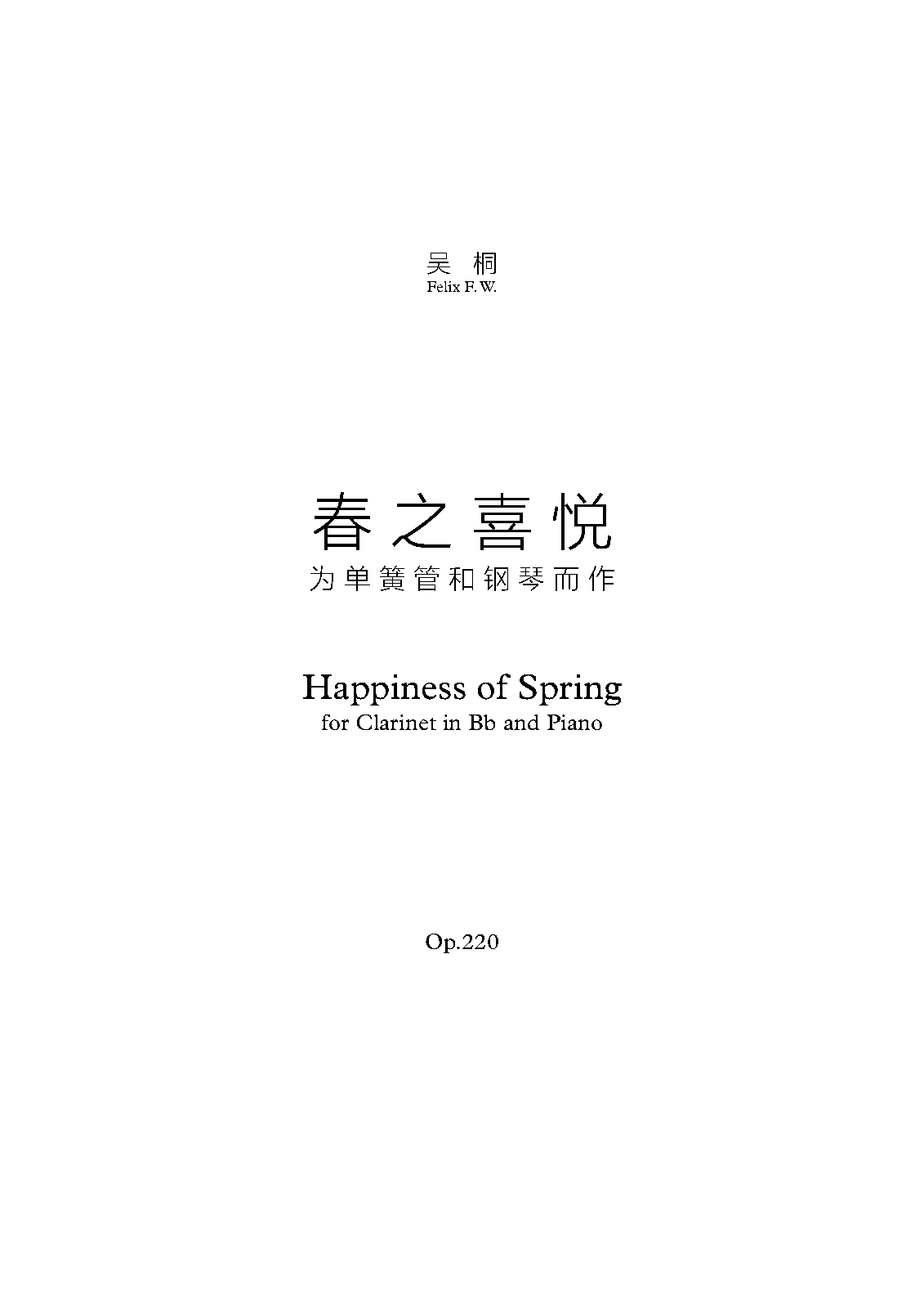 Work Title Happiness of Spring -- for Clarinet in Bb and Piano