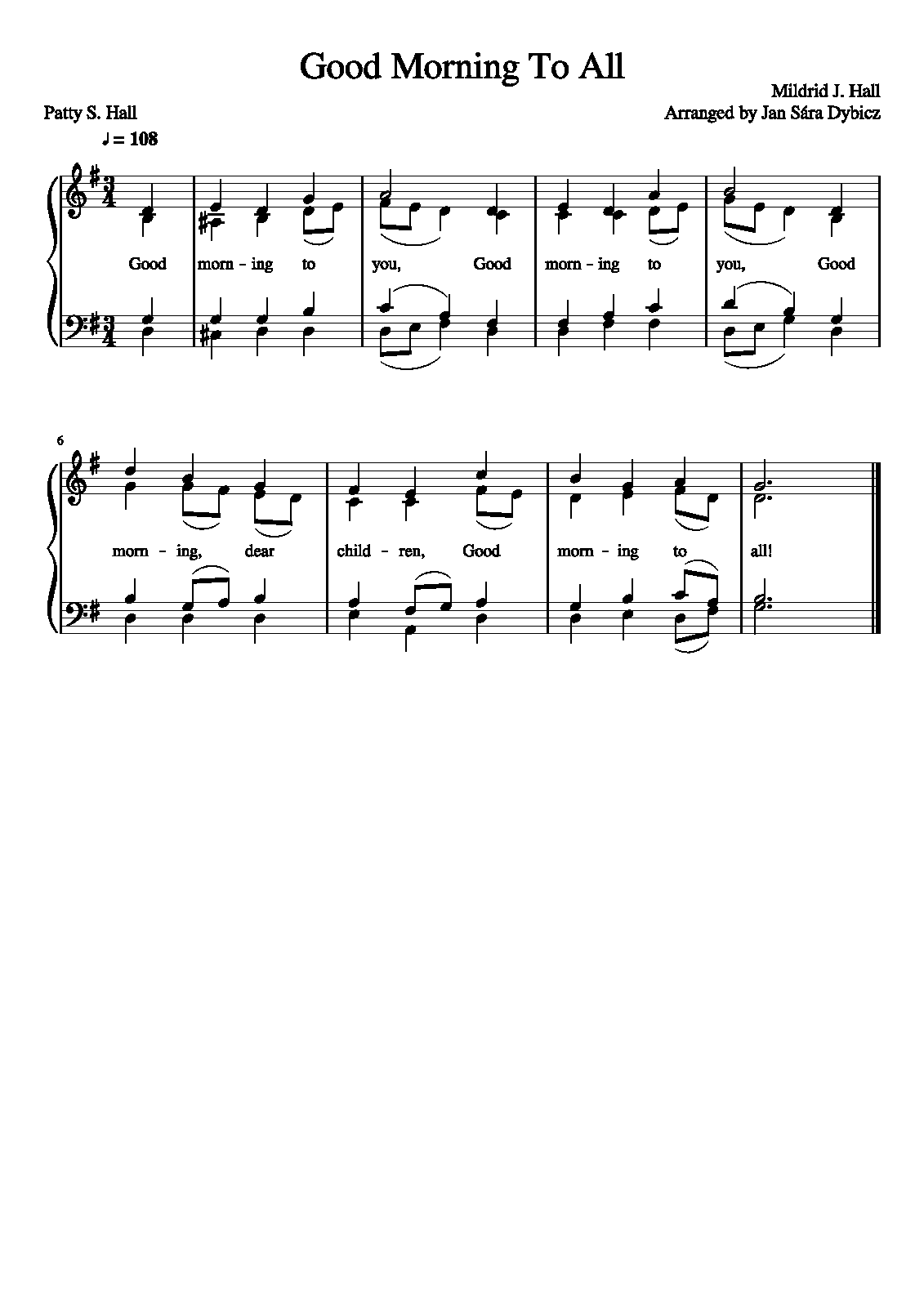 1893 in Song Stories for the Kindergarten (No.1), as "Good Morning to All"