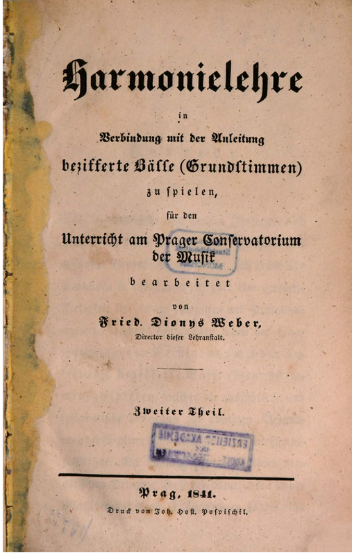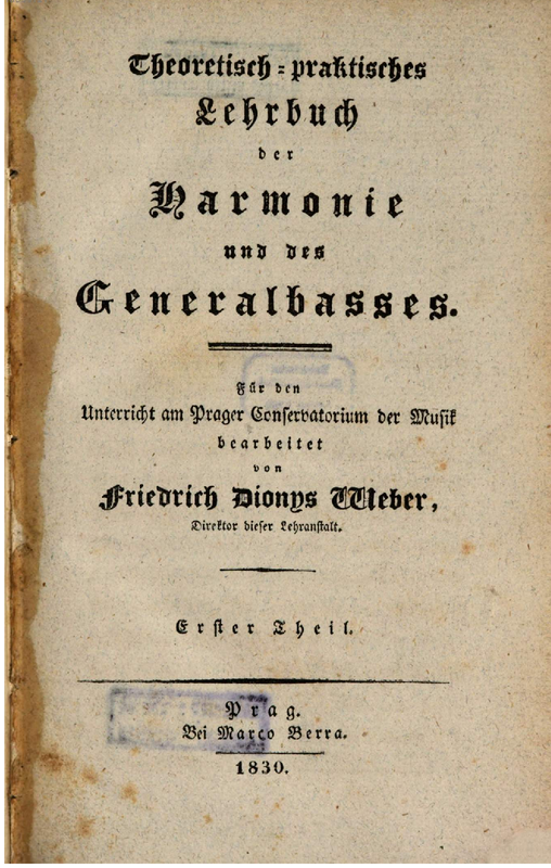 | Extra Information | 1833 volume entitled: Theoretisch-praktisches Lehrbuch der Harmonie und des Generalbasses. Title changed in 1841 edition: Harmonielehre in Verbindung mit der Anleitung bezifferte Bässe (Grundstimmen) zu spielen |