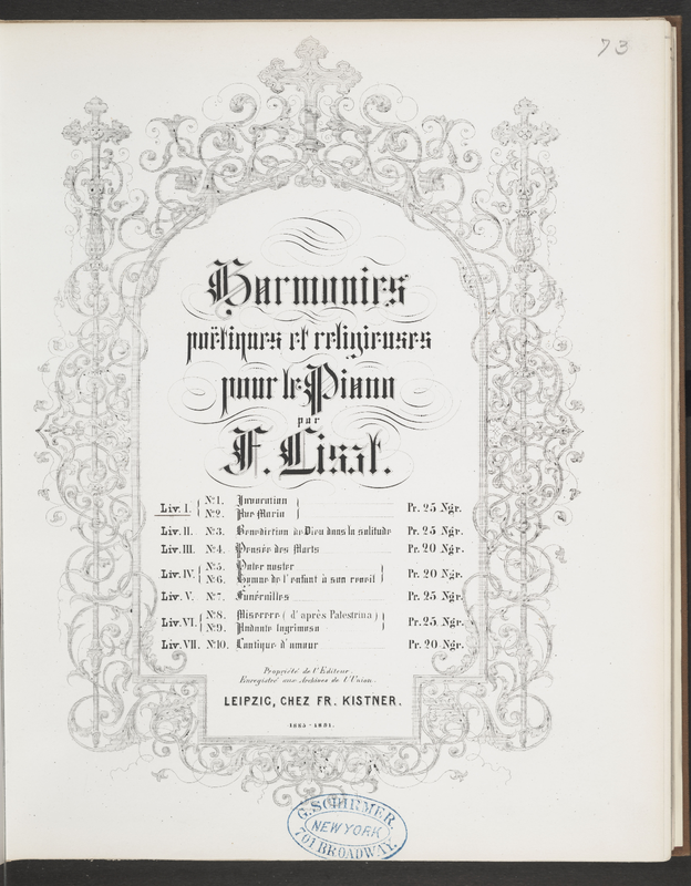 ⇒ 9 more: 2. Ave Maria (S.173/2) • 3. Bénédiction de Dieu dans la solitude (S.173/3) • 4. Pensée des morts (S.173/4) • 5. Pater noster (S.173/5) • 6. Hymne de l'Enfant à son réveil (S.173/6) • 7. Funérailles (S.173/7) • 8. Miserere d'après Palestrina (S.173/8) • 9. (Andante lagrimoso) (S.173/9) • 10. Cantique d'amour (S.173/10)
