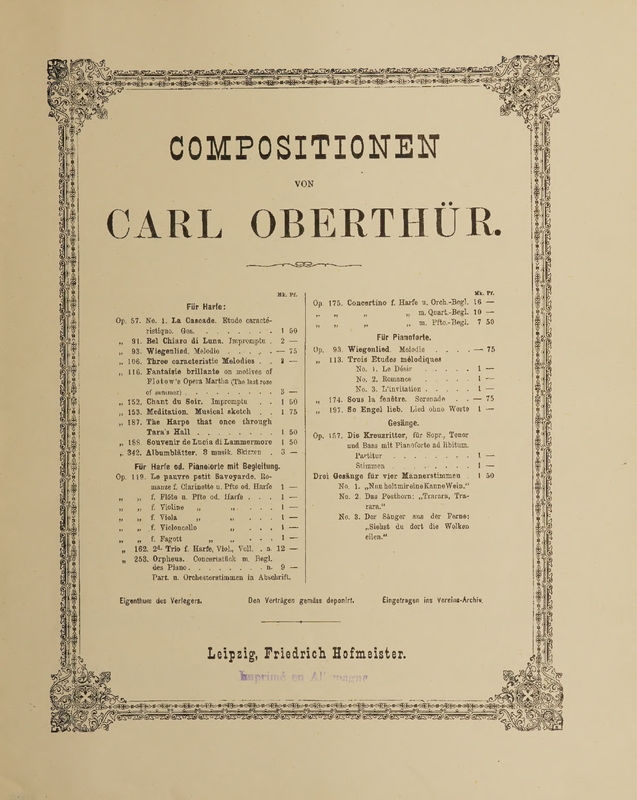 This work was used as an examination piece (Morceaux de concours) by the Conservatoire de Paris. The Conservatoire used this work in the following year(s): 1887, 1891, 1897.