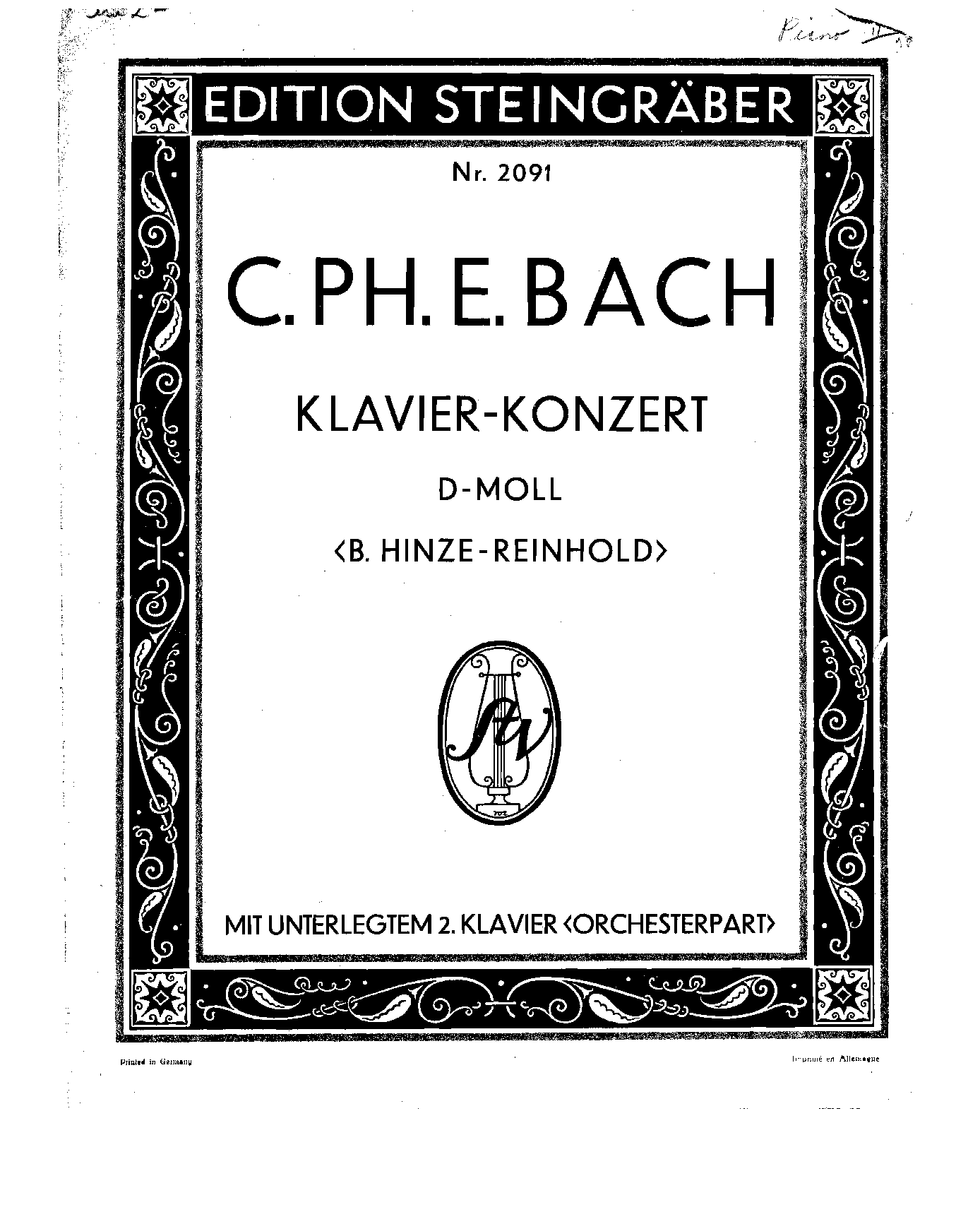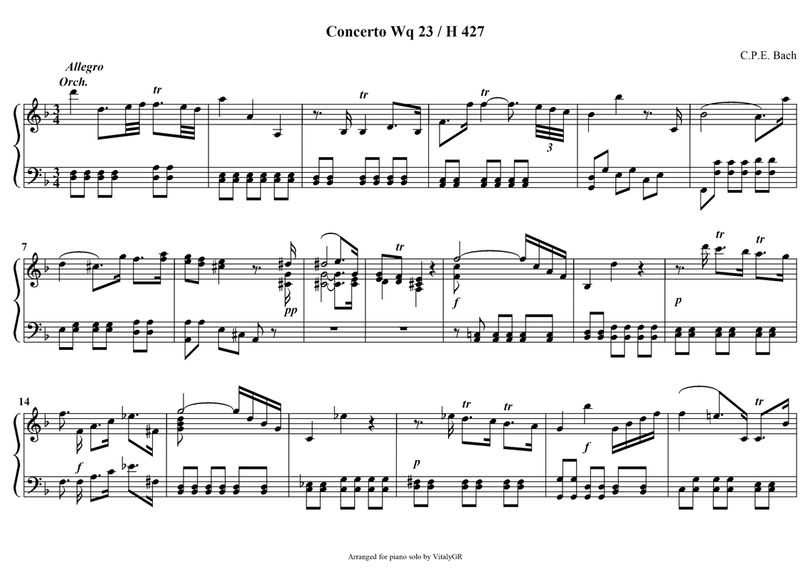 Konzert für Cembalo, 2 Violinen, Viola und Basso continuo in d-Moll, Wq 23, H.427; Concerto for Harpsichord, 2 Violins, Viola and Basso Continuo in D minor