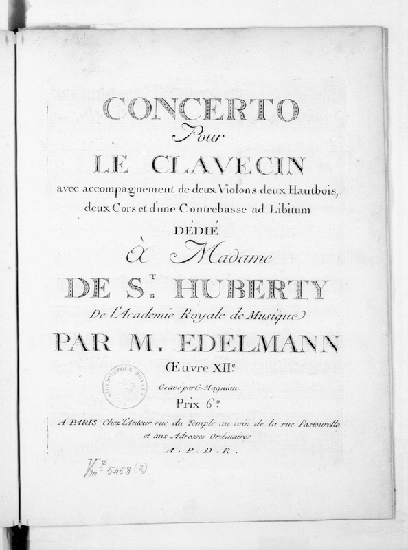 | Alternative. Title | Concerto pour le clavecin avec accompagnement de deux violons deux hautbois, deux cors et d'une contrebasse ad libitum |