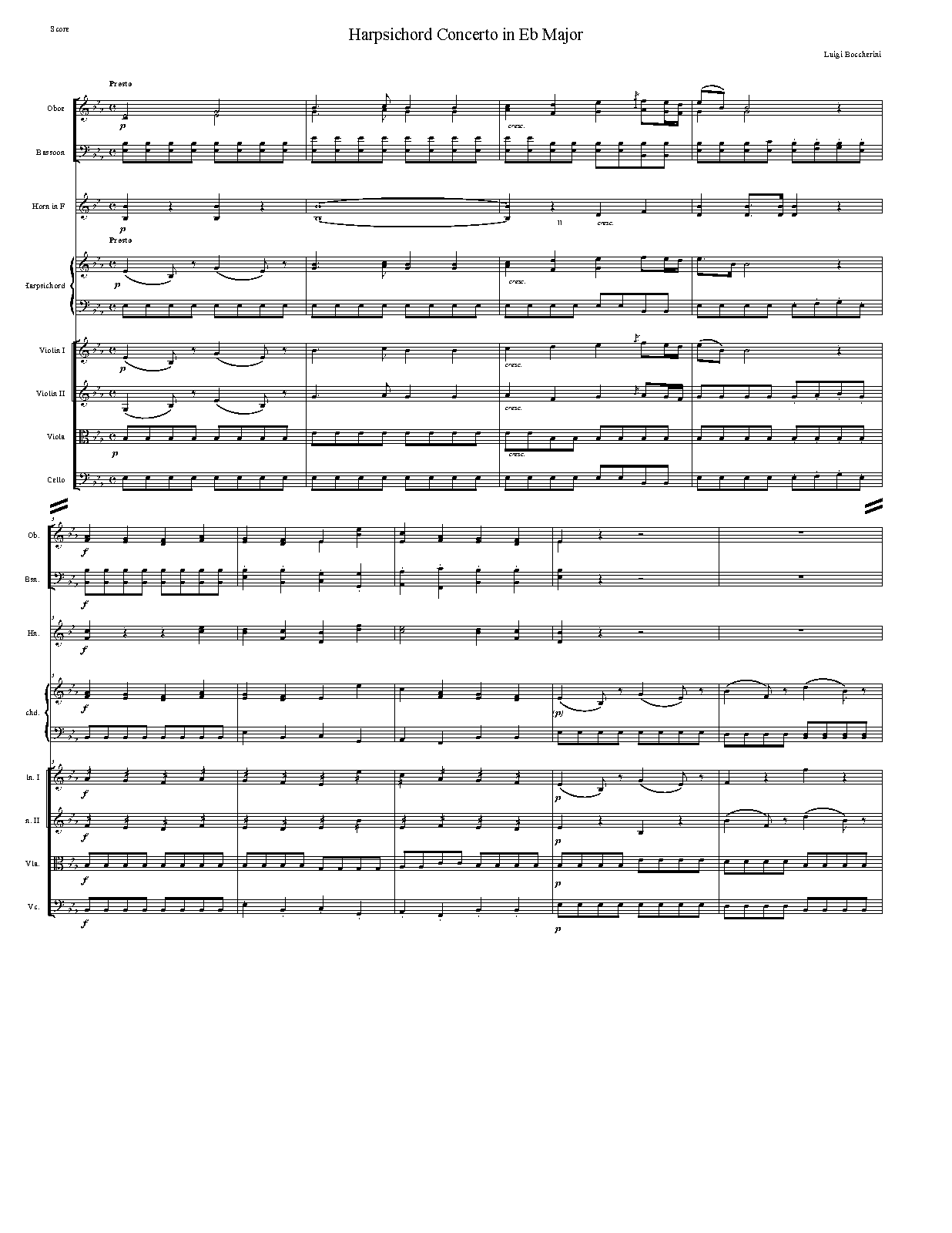 | Alternative. Title | Concerto in Modo Es per il Clavi-Cembalo 2. Corni 2. Violini 2. Oboi Viola, e Basso del Sigr. Bocherini |