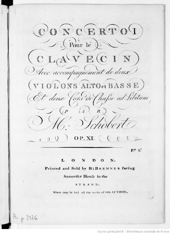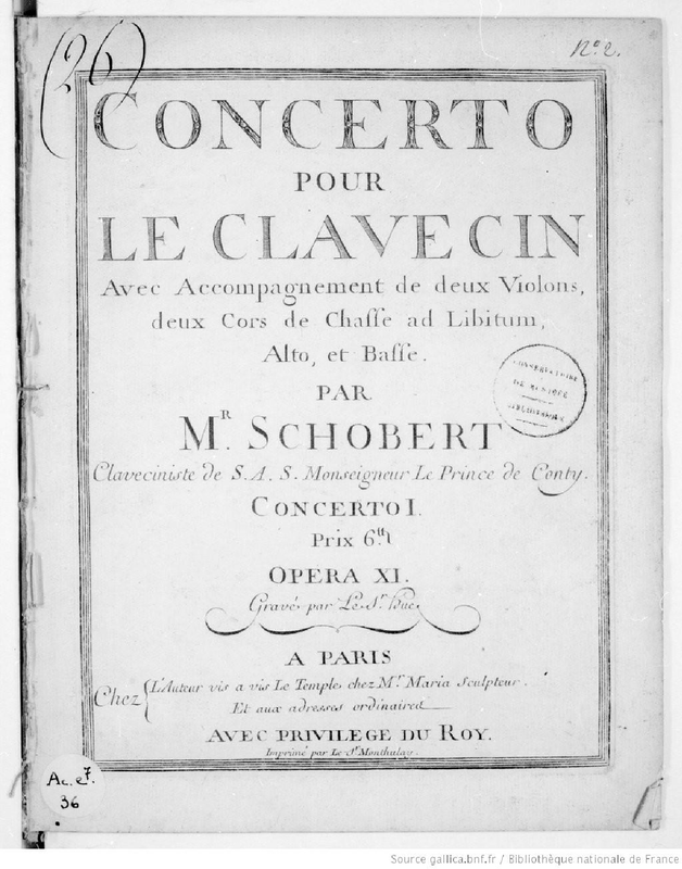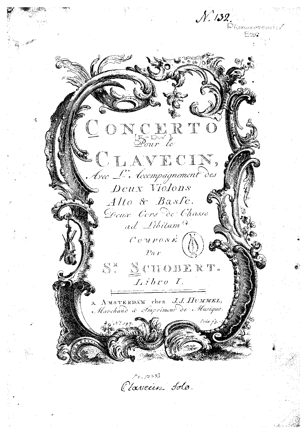 Concerto pour le Clavecin Avec L'Accompagnement des Deux Violons, Alto & Basse. Deux Cors de Chasse ad Libitum.Libro I