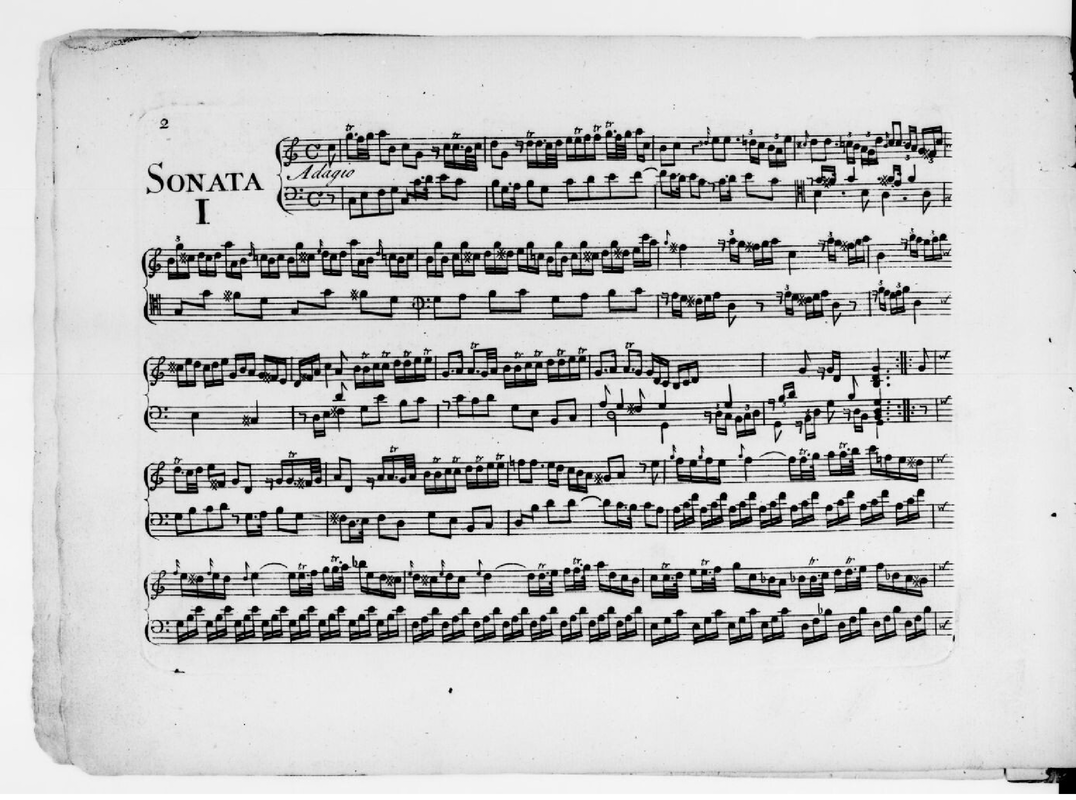 Likely first catalogued as No.30 by Charles Van den Borren in the article Contribution au catalogue thematique des sonates de Galuppi in Rivista musicale italiana, Vol.30, p.365-70 (Torino, 1923). Illy reused Borren's catalogue number. Both catalogue entries list identical incipits but with only 2 movements (Adagio, and Allegro), corresponding to the 1st and 3rd movements of the Walsh edition. The 2nd movement (Andantino, in G major) was located in some manuscript sources, but not attached to this sonata. The incipit of I.61 from the Illy catalogue is a close match for that movement.