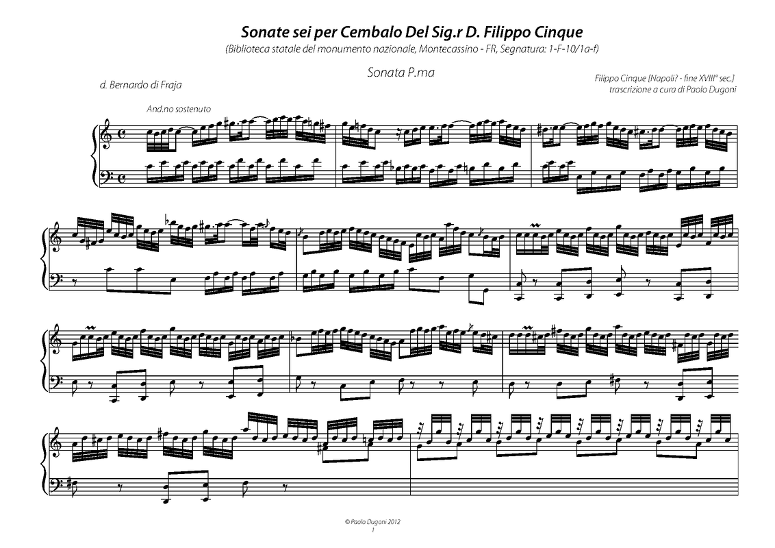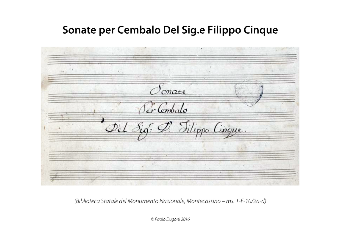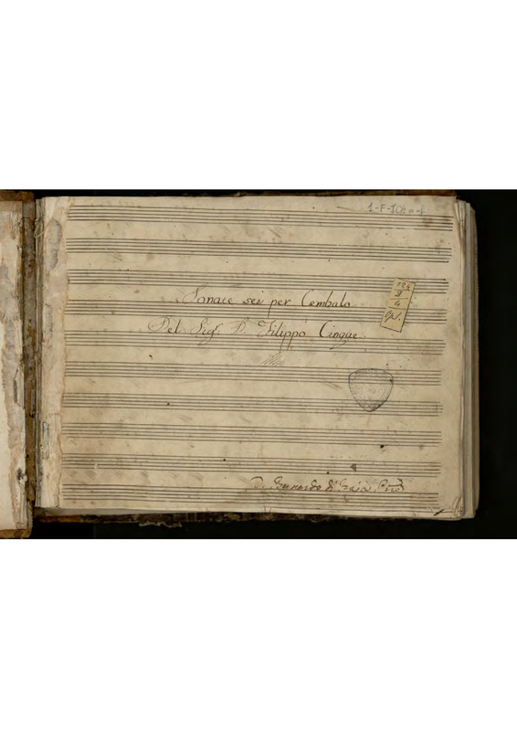 | Alternative. Title | Sonate sei per Cembalo / Del Sig.r D. Filippo Cinque / scritte per uso del Sig.r d. Bernardo di Fraja |