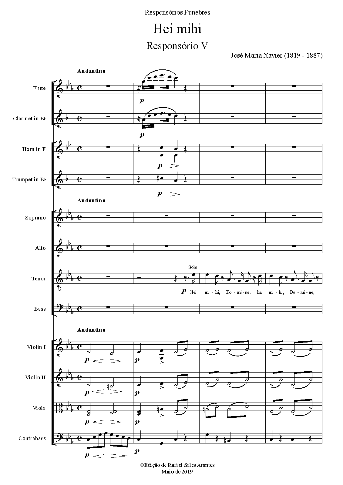 | Instrumentation | Voices: mixed chorus (SATB) Orchestra: flute, clarinet (B♭), 2 horns (F), trumpet (B♭), strings |