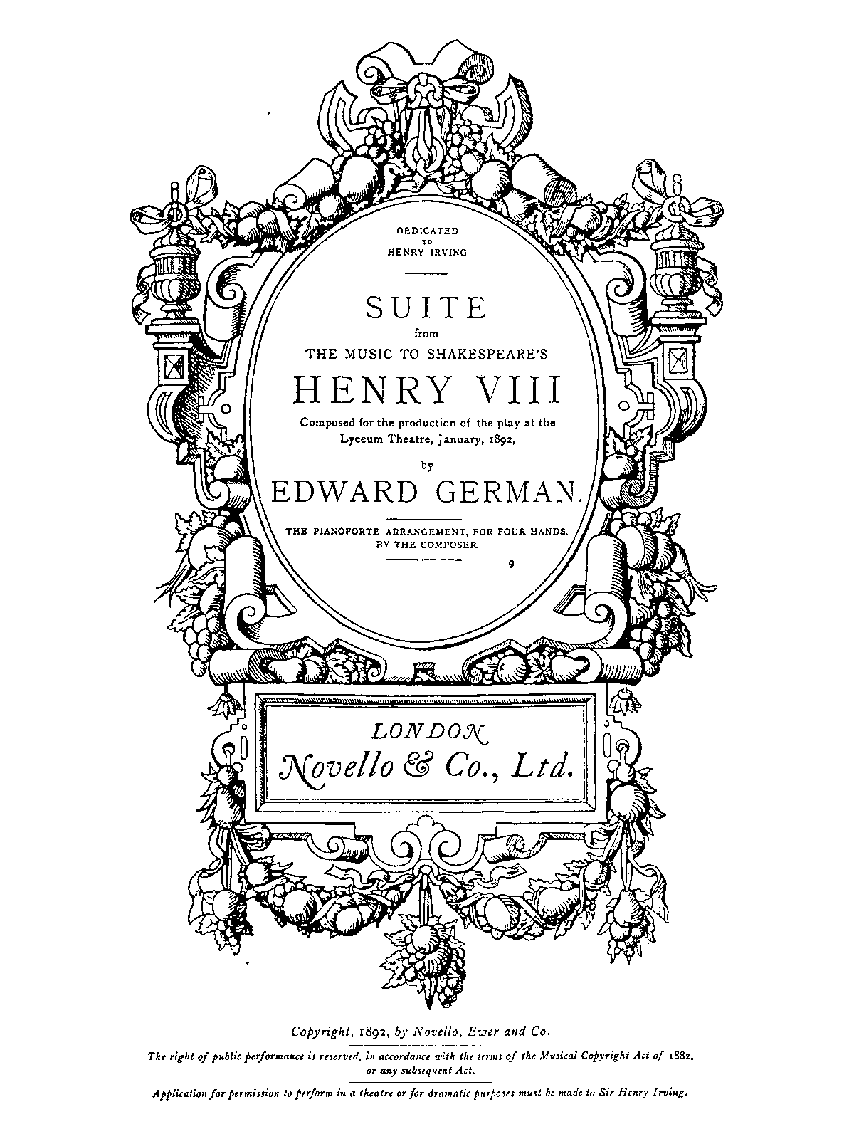 | Extra Information | Incidental music for a production of the play by Henry Irving (1838-1905). The March from the 1892 incidental music was revised in 1911 as a Coronation March for the ceremonies for the coronation of King George V. |