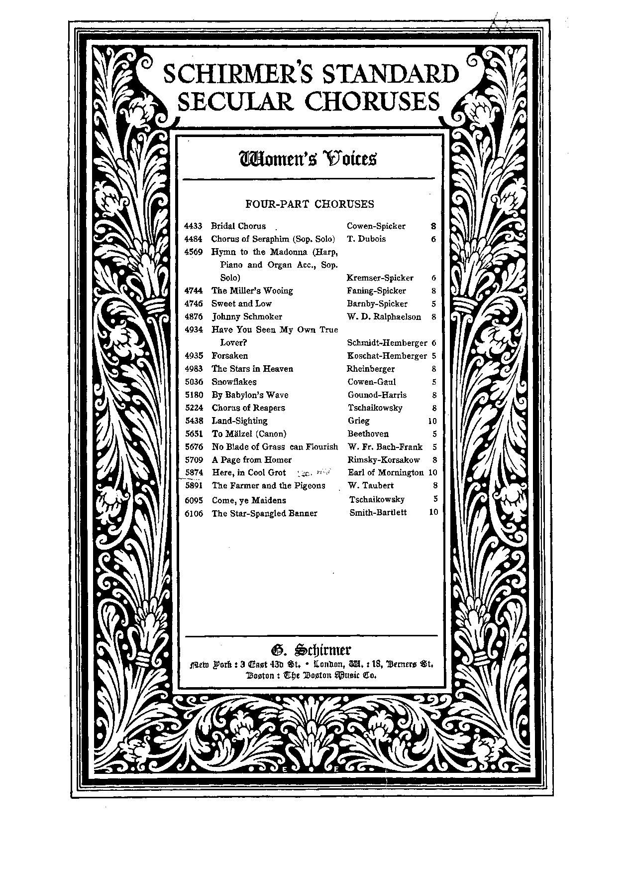 | Genre Categories | Glees; For 4 voices; For unaccompanied voices; |