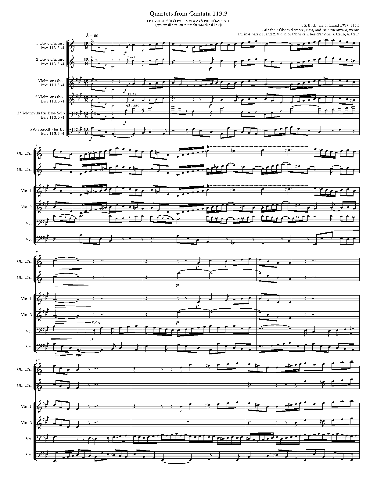 For Quartets: Oboe or Oboe d'Amore ad lib. and Strings (Lang)