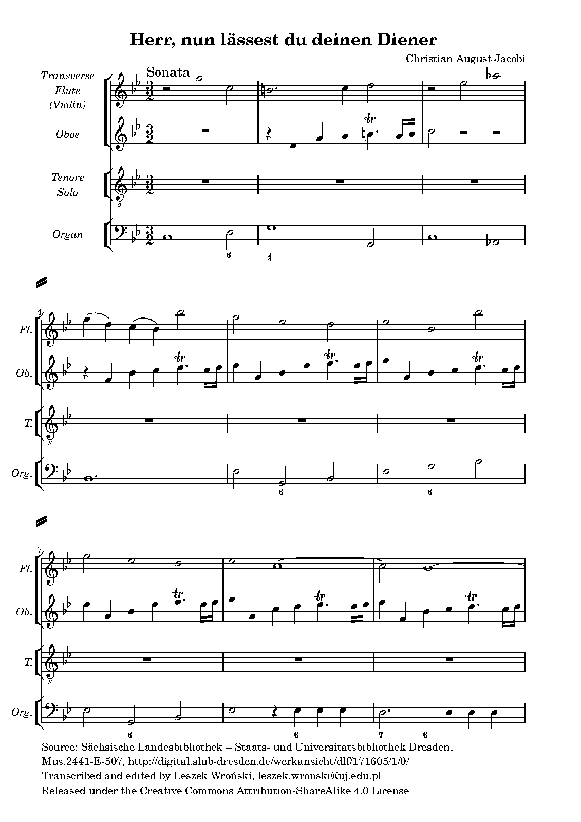 tenor, flute (or violin), oboe, continuo