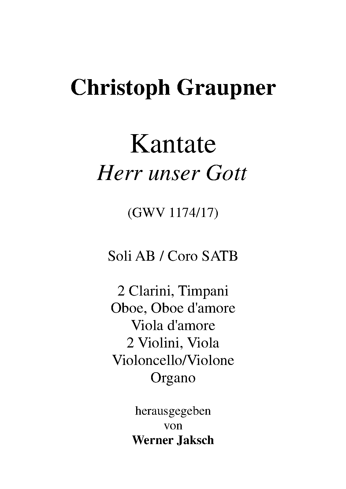 ⇒ 12 more: Vocal Score • Oboe • Oboe d'amore • Trumpet 1 • Trumpet 2 • Timpani • Violins I • Violins II • Viola d'amore • Viola d'amore (transposed) • Violas • Cellos and Basses