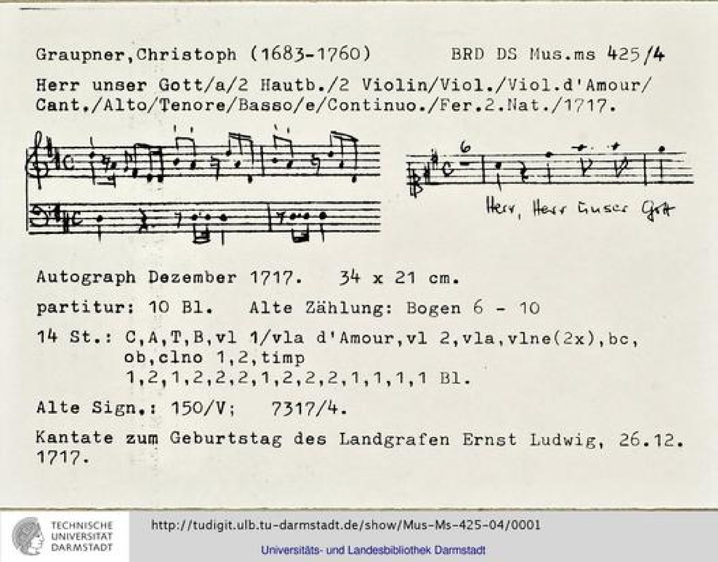 | Opus/Catalogue NumberOp./Cat. No. | GWV 1174/17 |