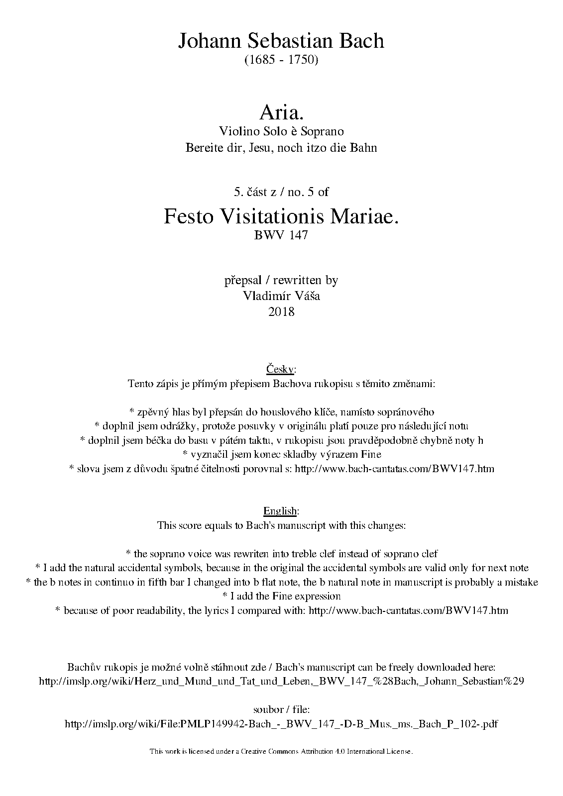Opus/Catalogue NumberOp./Cat. No. BWV 147 ; BC A 174