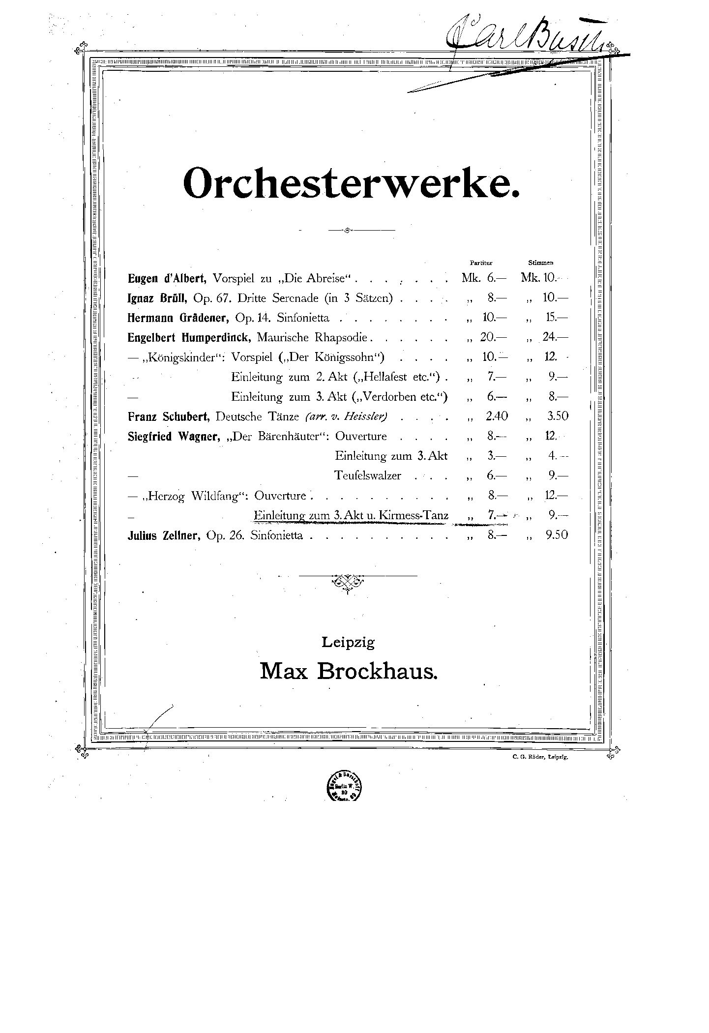 | First Publication. | 1901 – Leipzig: Max Brockhaus |