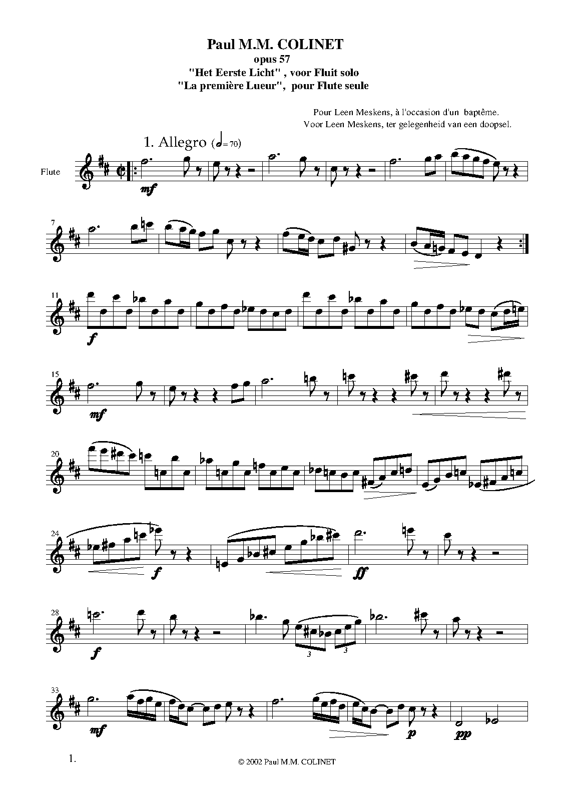 | Extra Information | Composed for an amateur flute player, Leen Meskens, for a baptism of a child. |