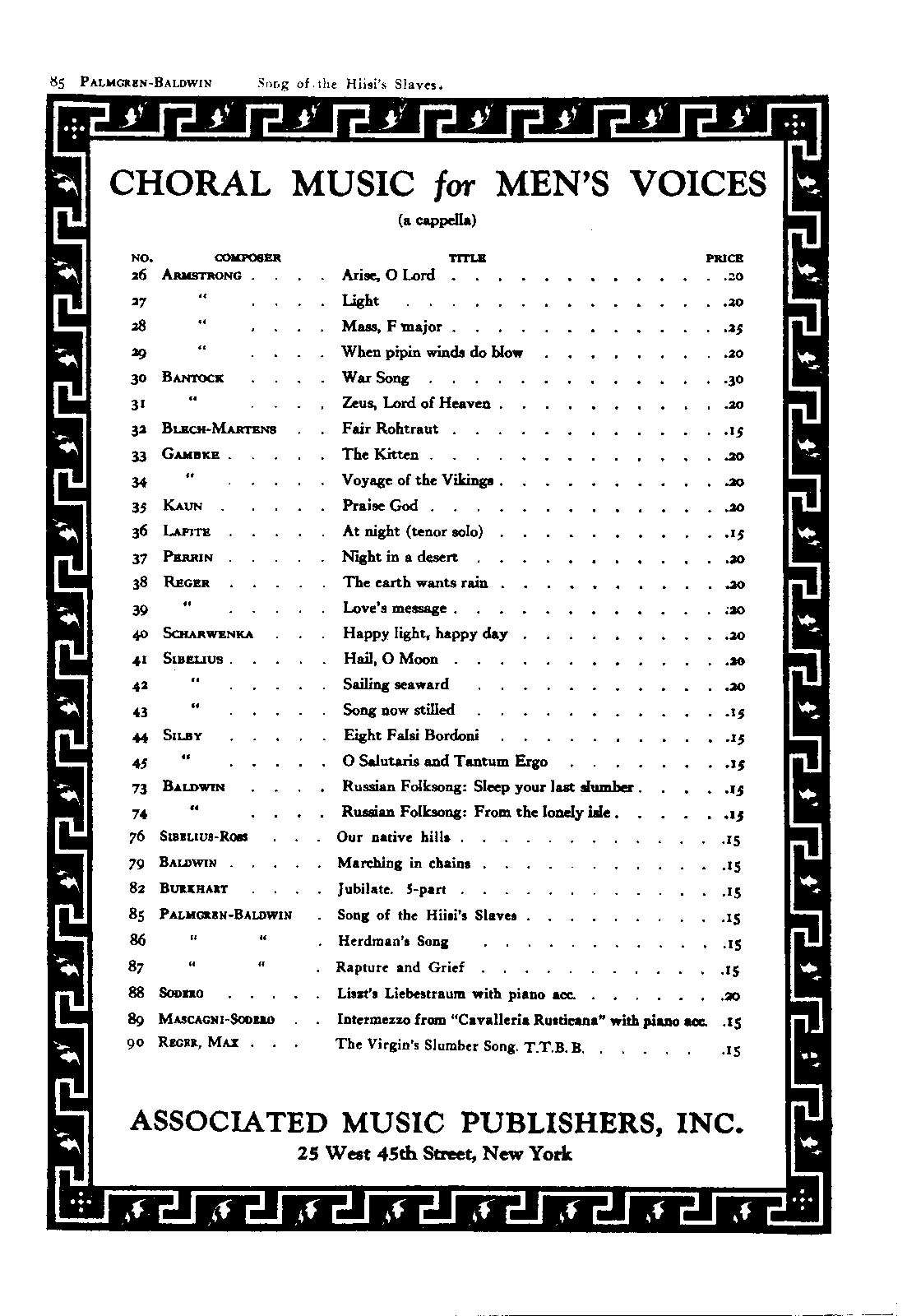 | Genre Categories | Songs; For male chorus; Scores featuring male chorus; |