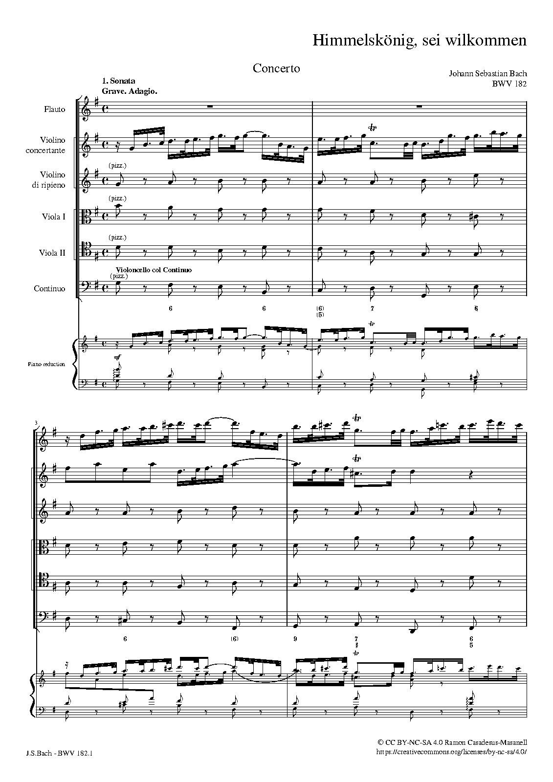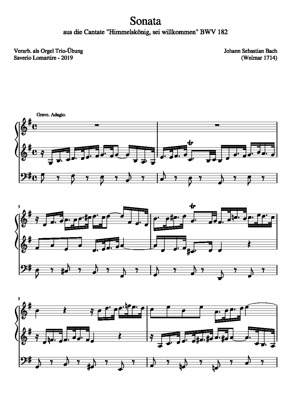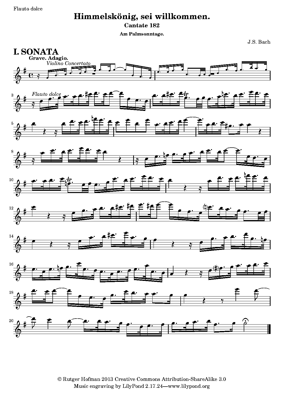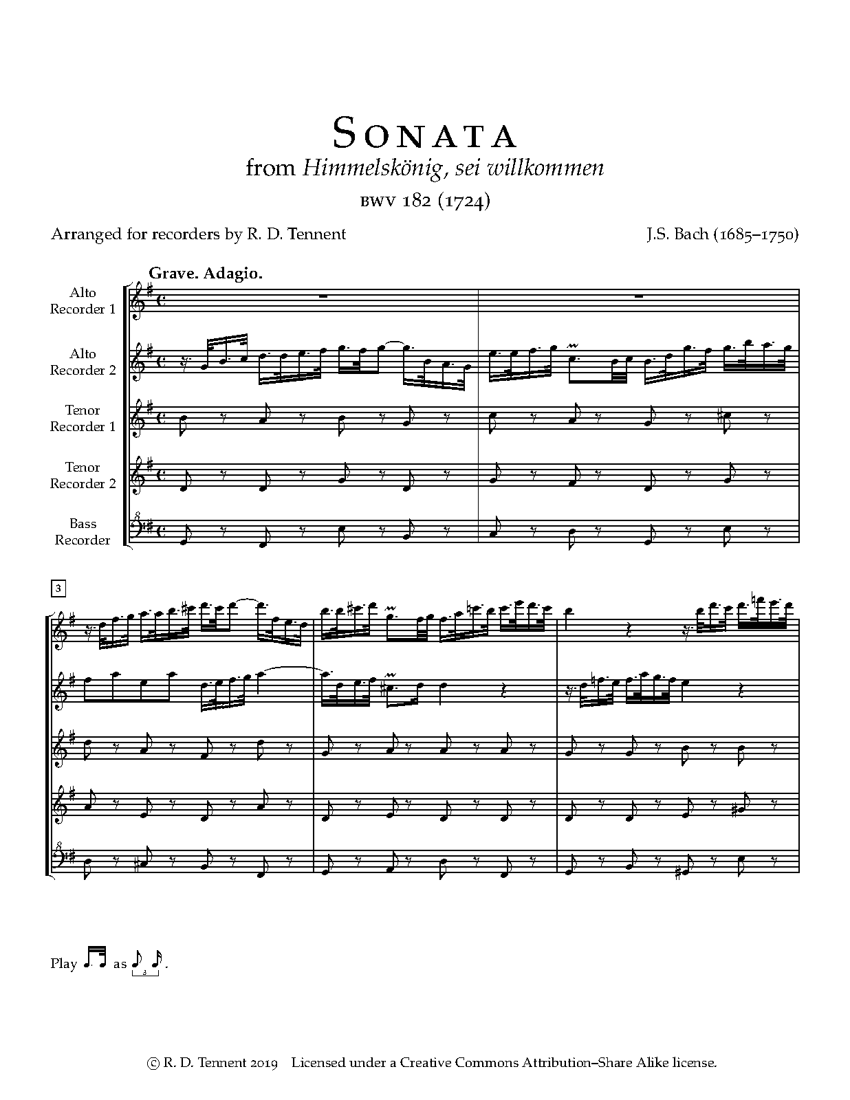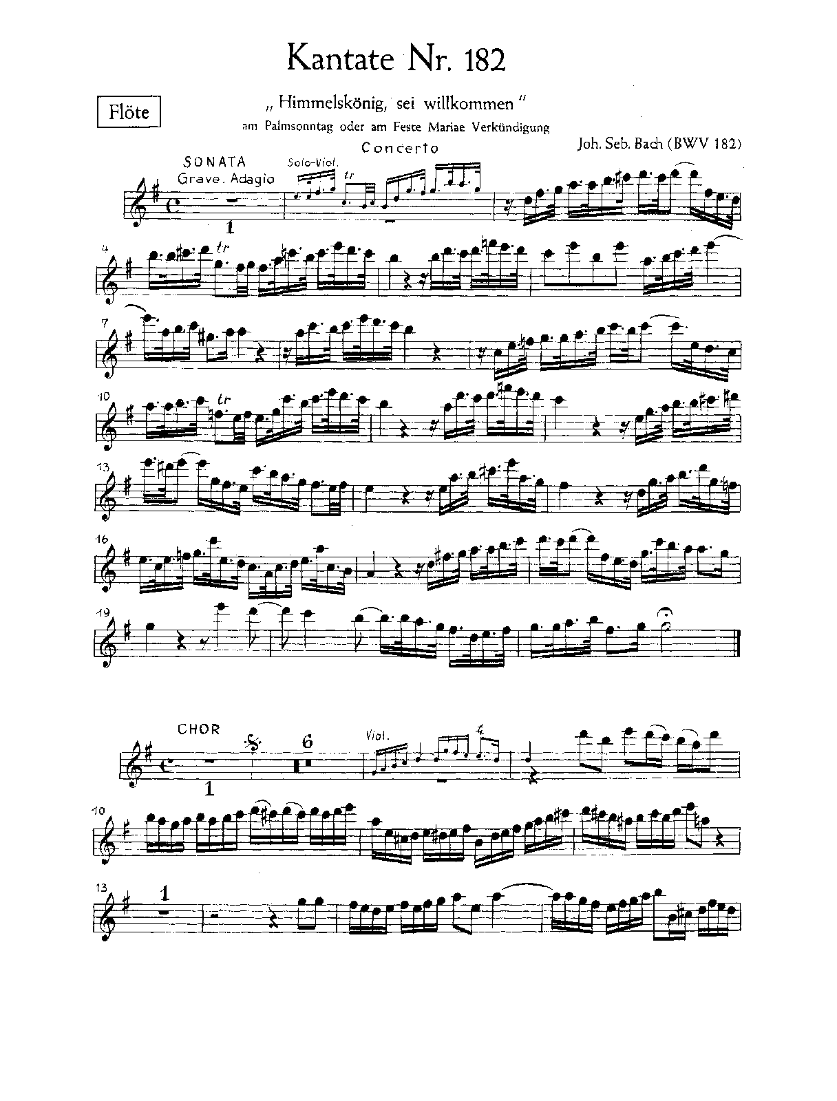 Misc. Notes The Sonata of BWV 182 is used for the first movement of a Sonata for 2 Alto Recorders and BC. Second movement of the sonata is from BWV 122, third from BWV 106 and last from BWV 1049.