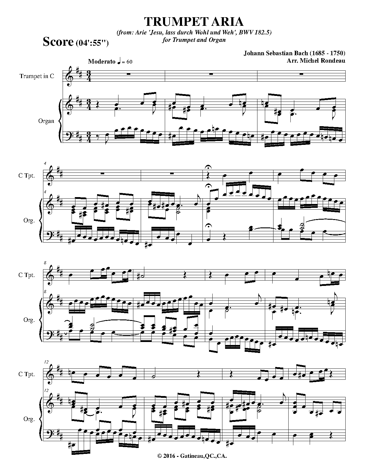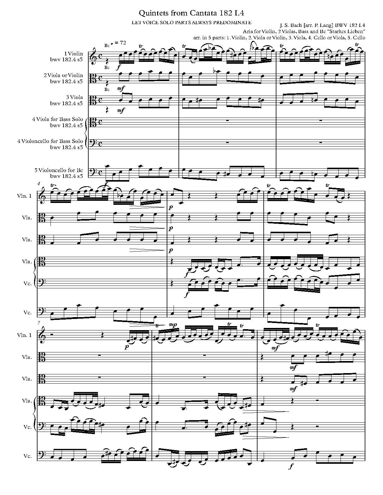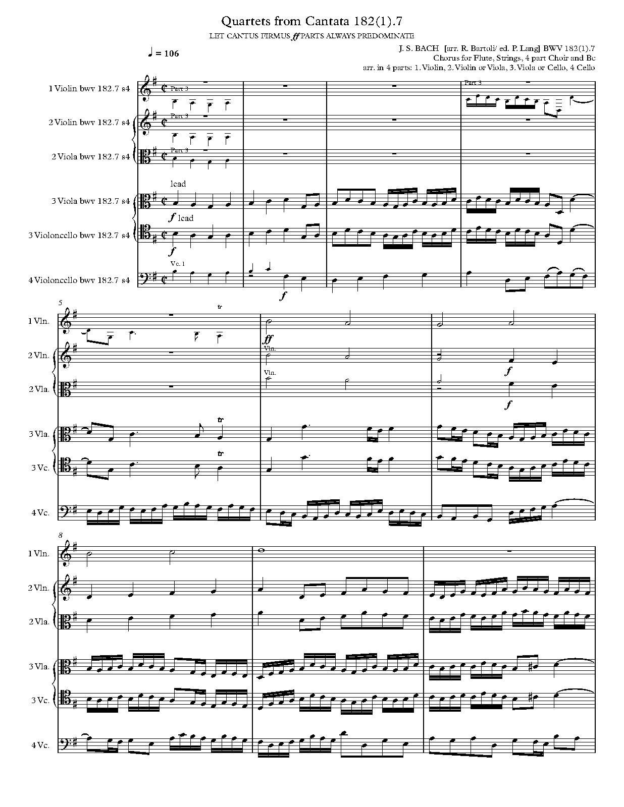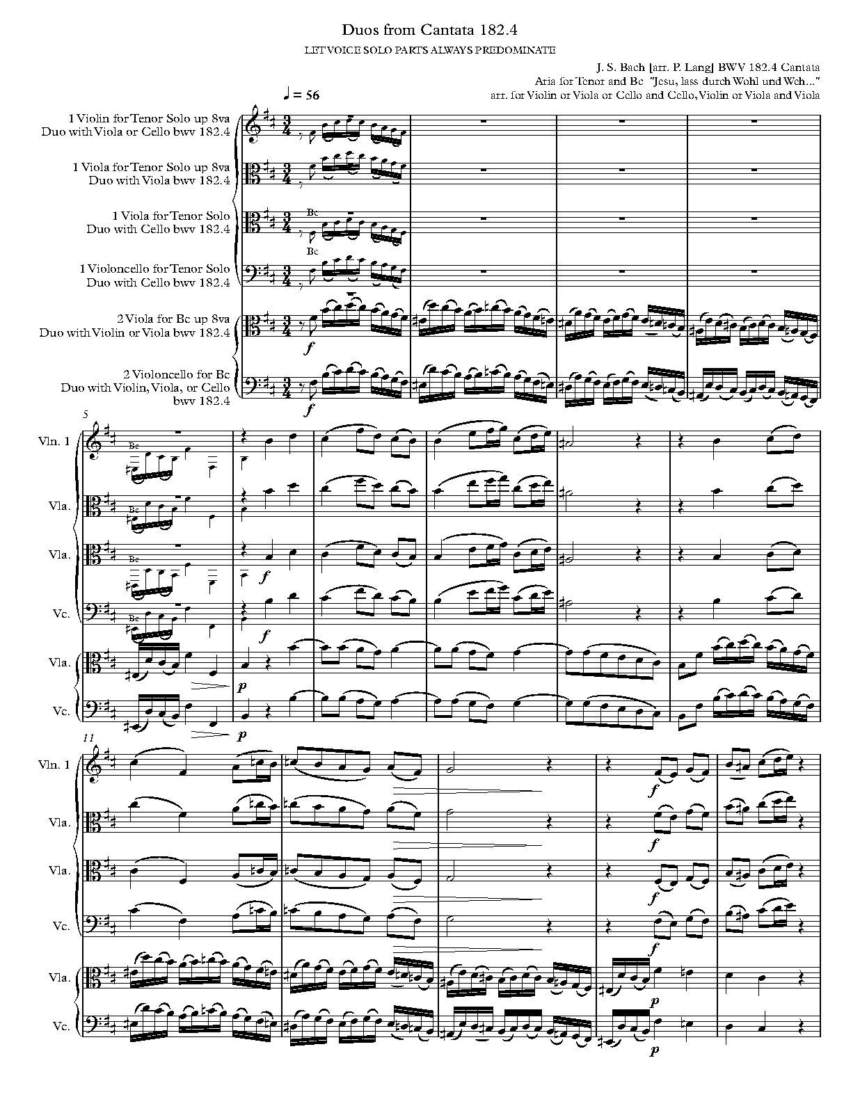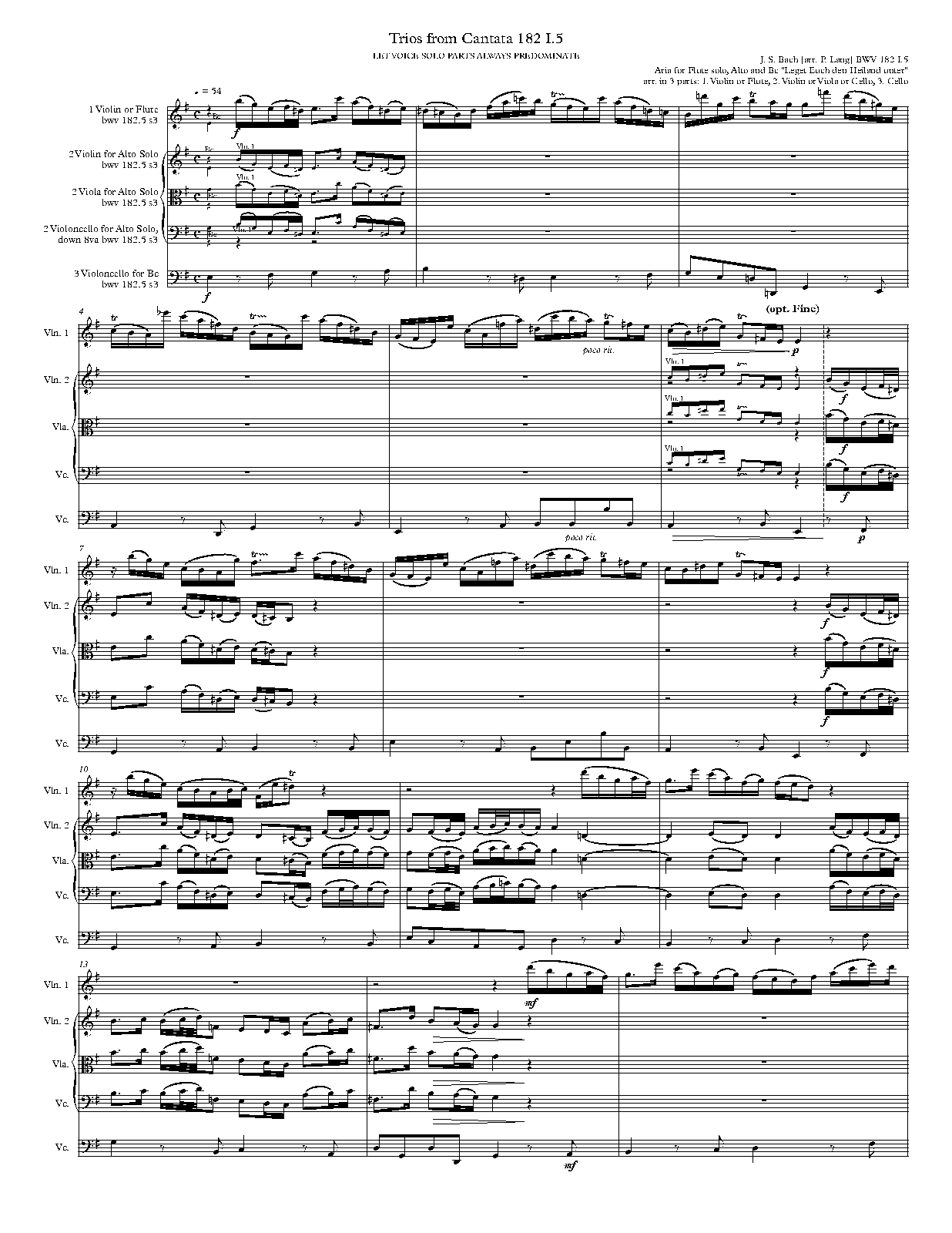 Misc. Notes The Sonata of BWV 182 is used for the first movement of a Sonata for 2 Alto Recorders and BC. Second movement of the sonata is from BWV 122, third from BWV 106 and last from BWV 1049.