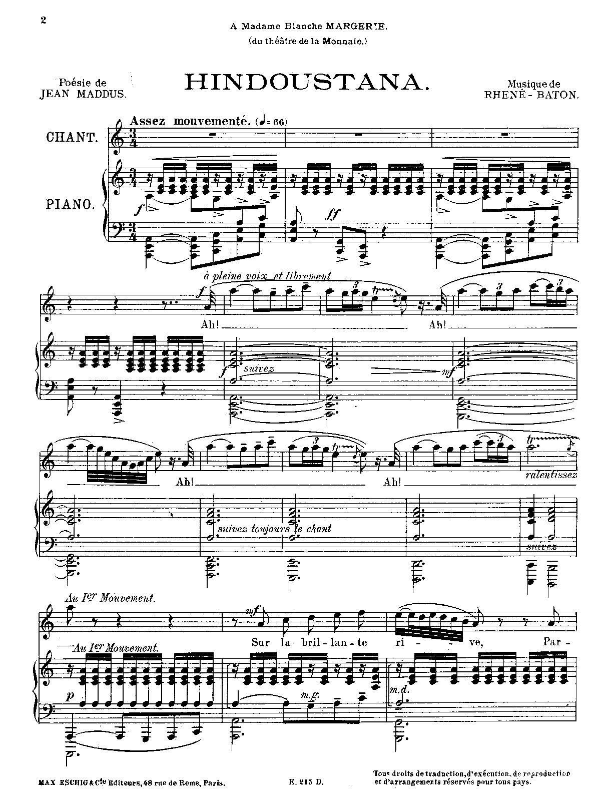 | Dedication | A Madame Blanche Margerie (du théâtre de la Monnaie) |