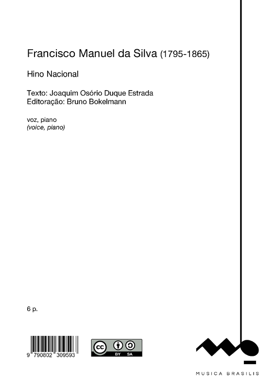 | Authorship Note Silva's Hino nacional brasileiro was a hymn-refrain composition from ca.1830. It received various lyrics during the 19th century, as was common for this musical form, often related to special commemorations. It gained popularity at aristocratic events and was frequently used in celebrations of the monarchy (hino de facto). Its popularity led it to be chosen as the national anthem, without lyrics, by the Republican regime in 1890. New lyrics by Duque-Estrada were officially adopted in 1922, and official instrumental versions by Miguez, Pinto Júnior, Republicano, and Fernandes were established in 1936 and 1942 (see General Information section below). |
