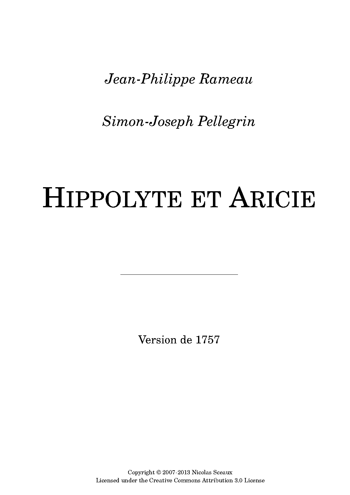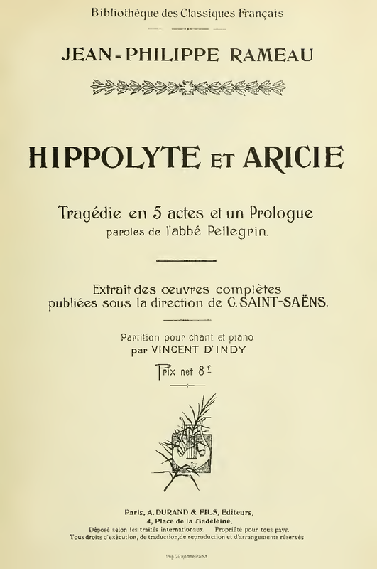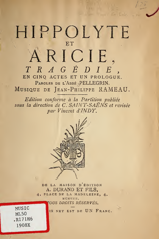 | Alternative. Title | Hippolite et Aricie; Tragédie en musique en cinq actes et un prologue |