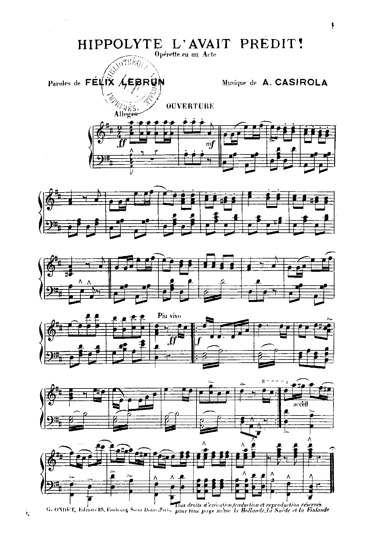 | Copyright Information | Publication noted in the Bibliographie de la France : 87e année, 2e série, Nº 51, 17 Décembre 1898, p.917, reg.6008 (vocal score). |