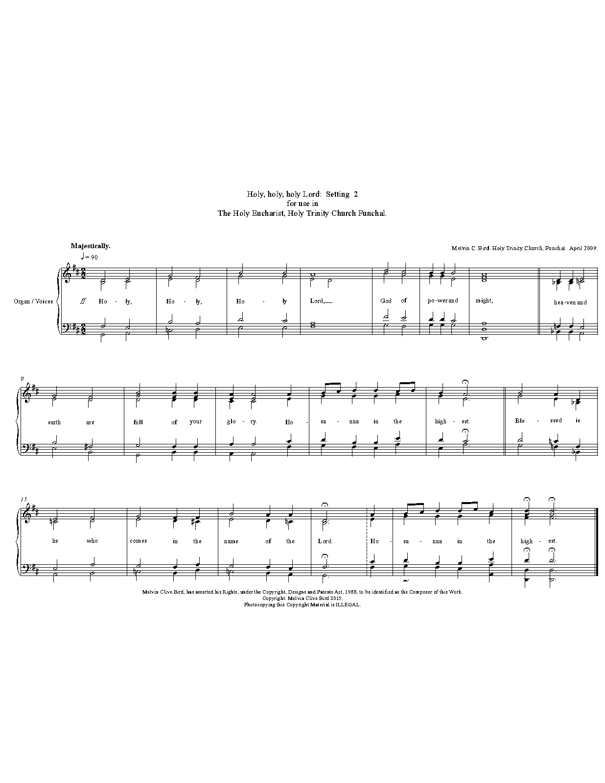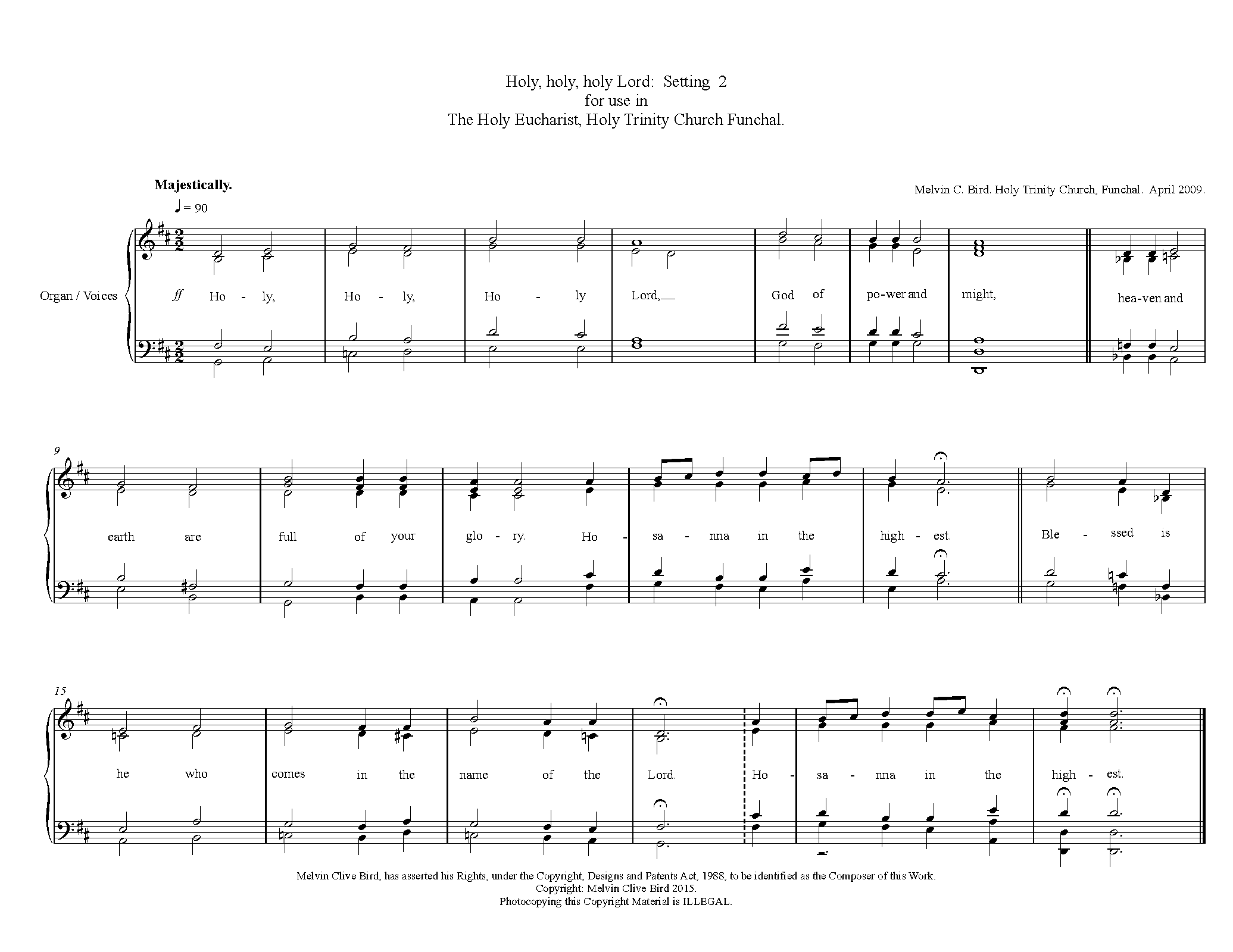Melvin Bird has asserted his right under the Copyright, Designs and Patents Act, 1988, to be identified as the composer of this work. Please contact the composer for further information. The composer welcomes any performances and recordings. melvin.bird@hotmail.com. A clear and clean text.