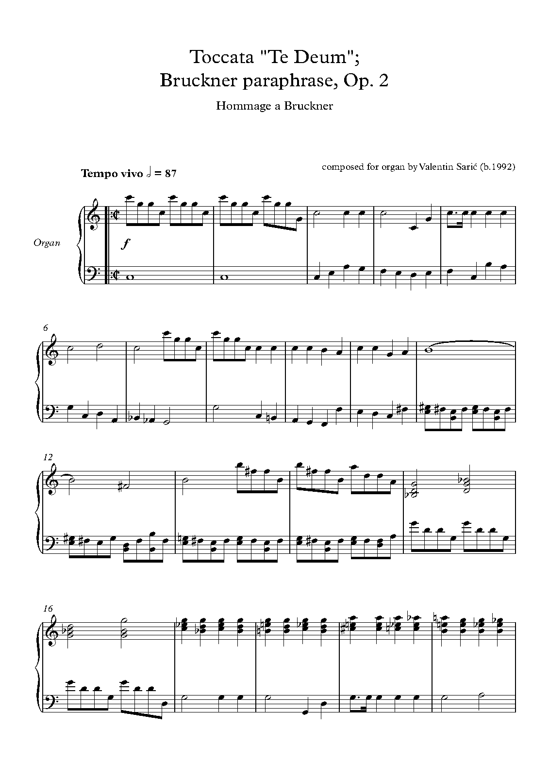 | Work Title | Toccata Te Deum; Bruckner Paraphrase |