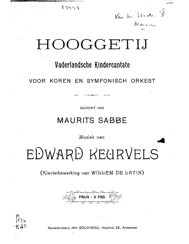 | Alternative. Title | vaderlandsche kindercantate voor koren en symfonisch orkest, High Tide; patriotic cantata for children's choirs and symphonic orchestra |