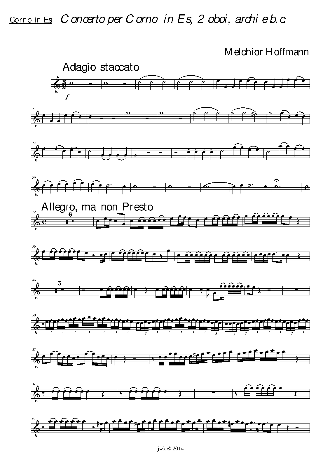 Concerto ex Dis: Cornu concerto, Oboe concerto, Violino primo, Violino secundo, Viola, Basso