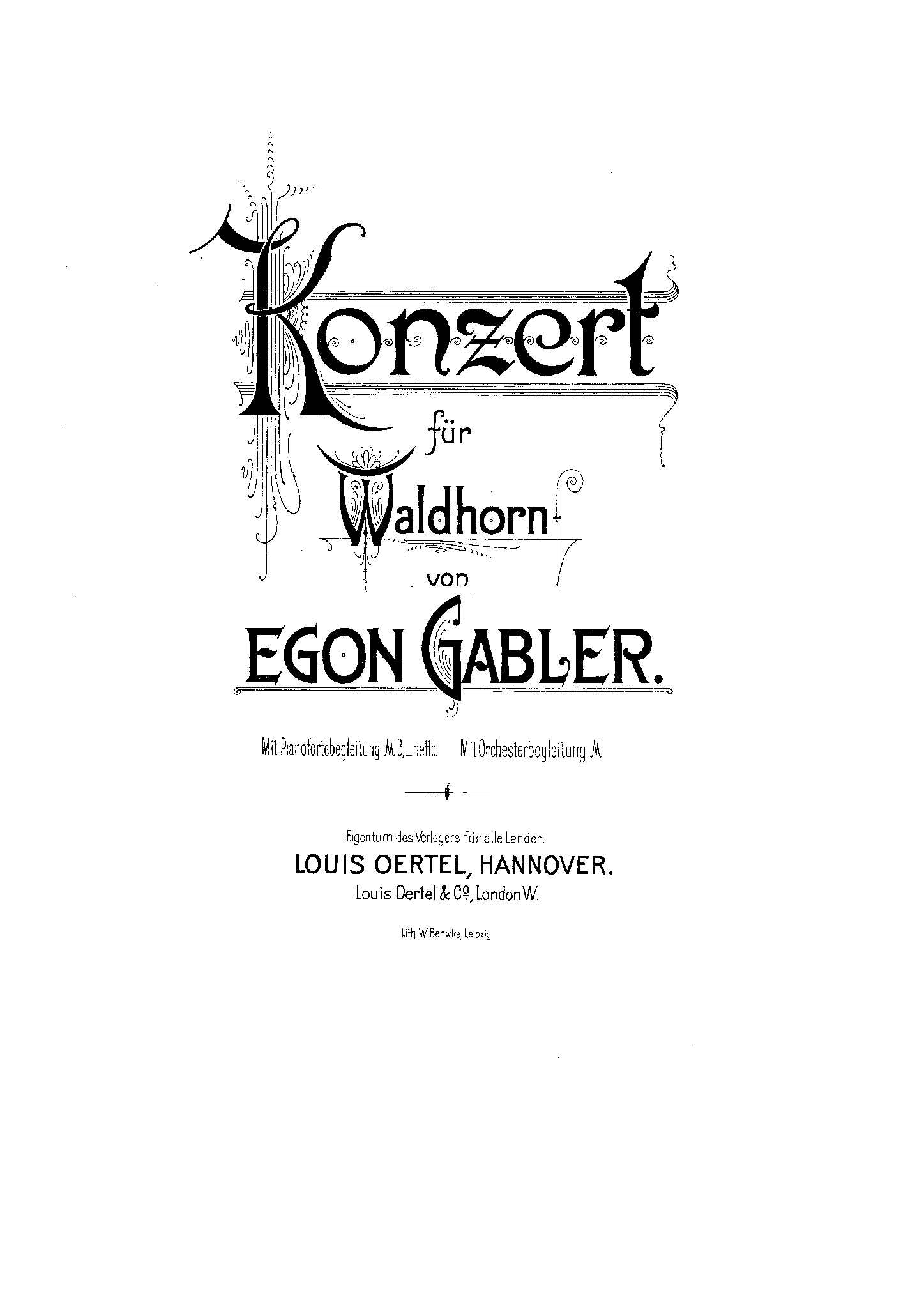 Publisher. Info. Hannover: Edition Louis Oertel, n.d.[1904]. Plate L. 4304/5 O.