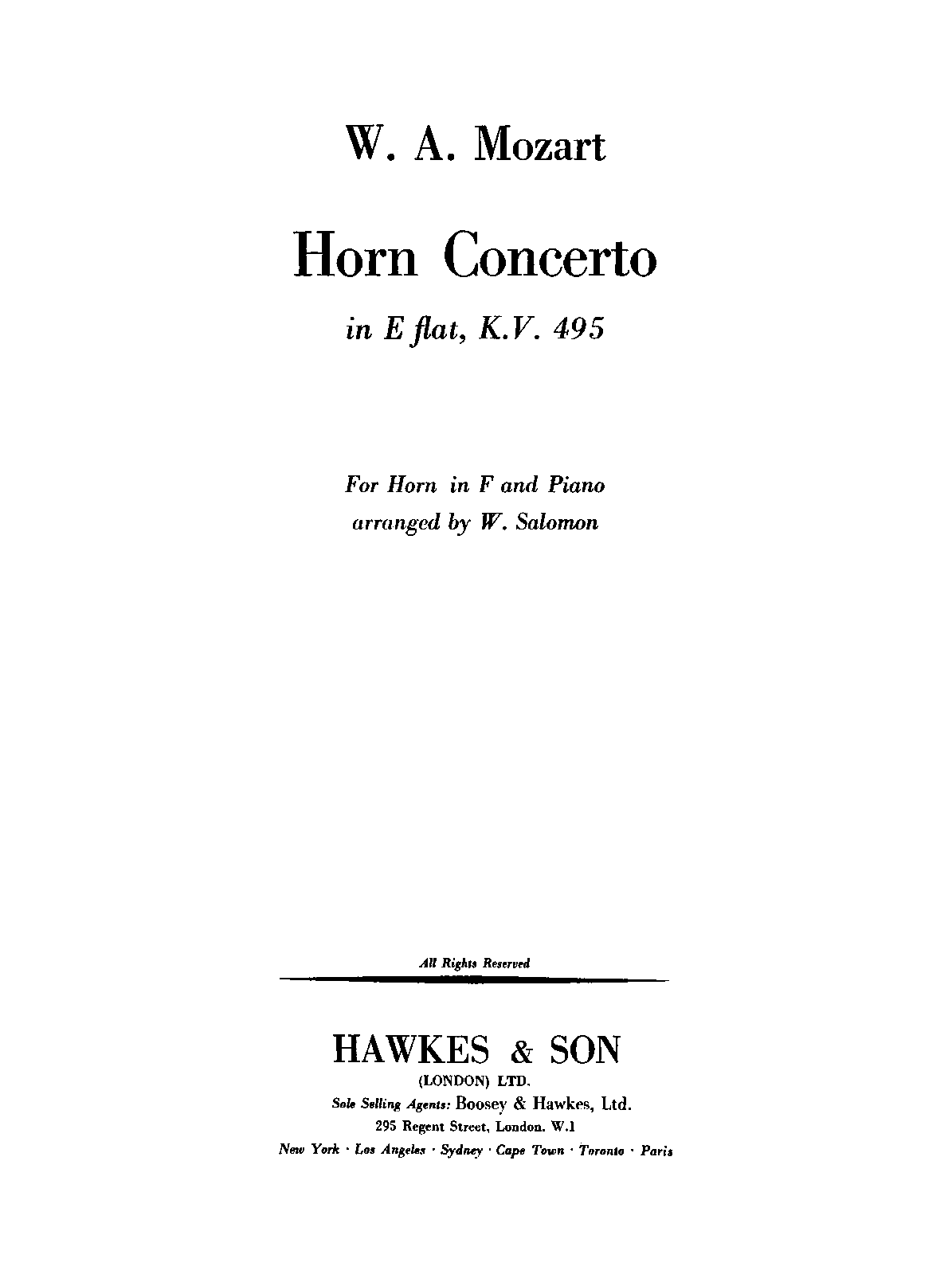 Misc. Notes Soloist part for Horn in F from the original in E. Original source: Band 5: Hornkonzerte [NMA V/14/5] (pp.57-88).