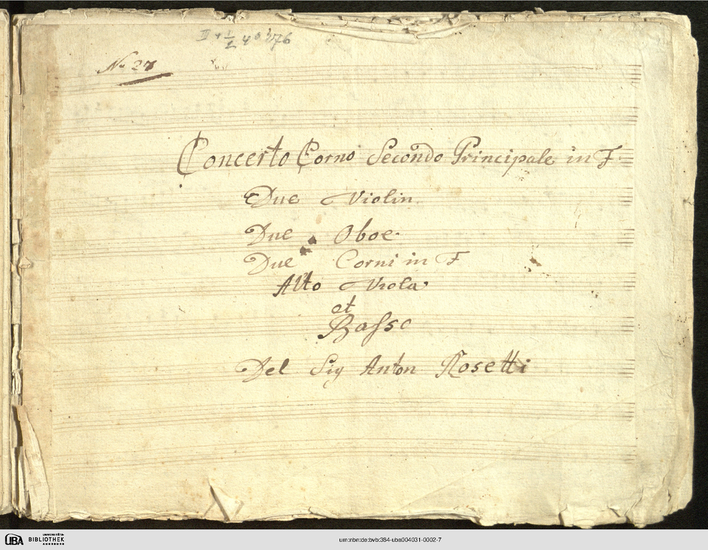 | Alternative. Title | Concerto in Fa maggiore per corno ed orchestra |