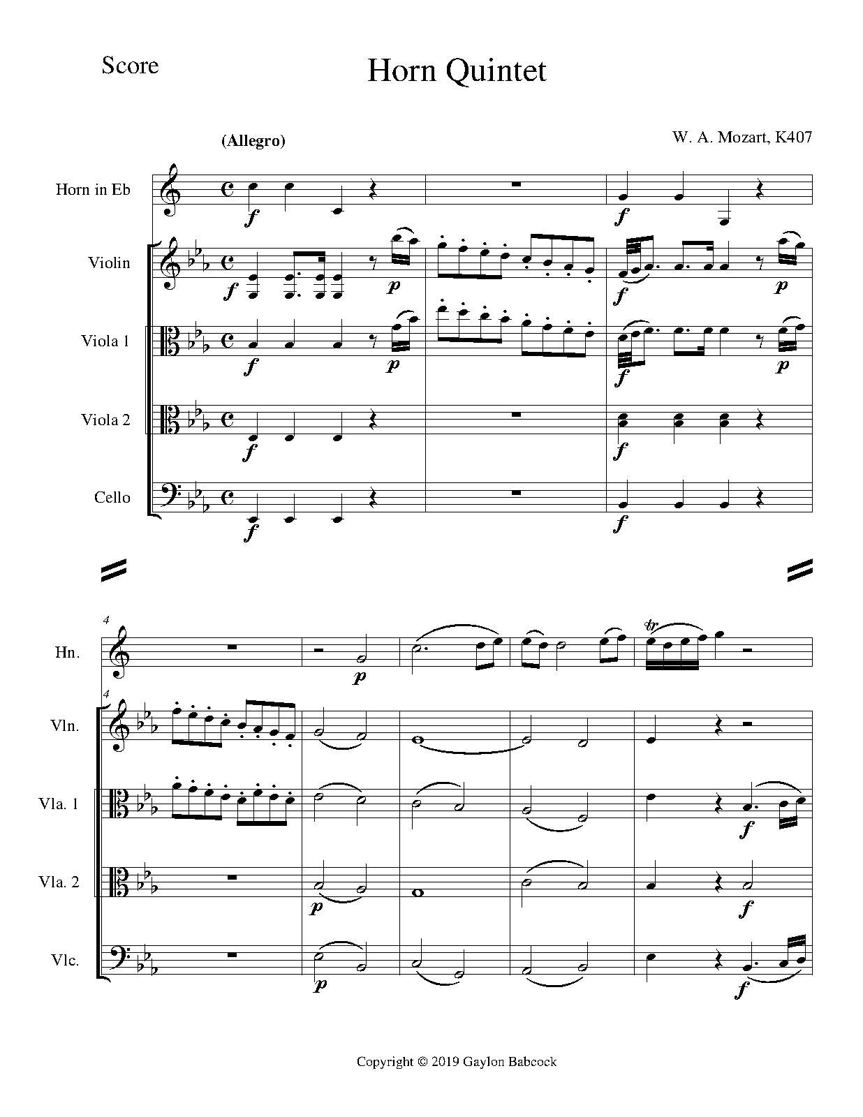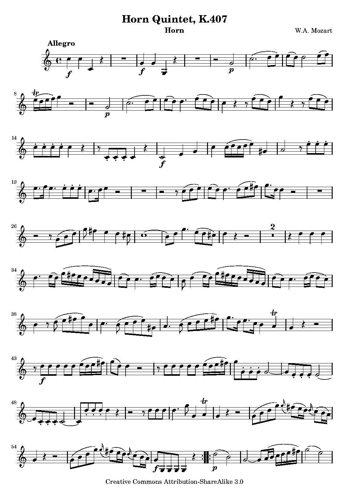 Horn Quintet in E-flat major, K.407/386c (Mozart, Wolfgang Amadeus)