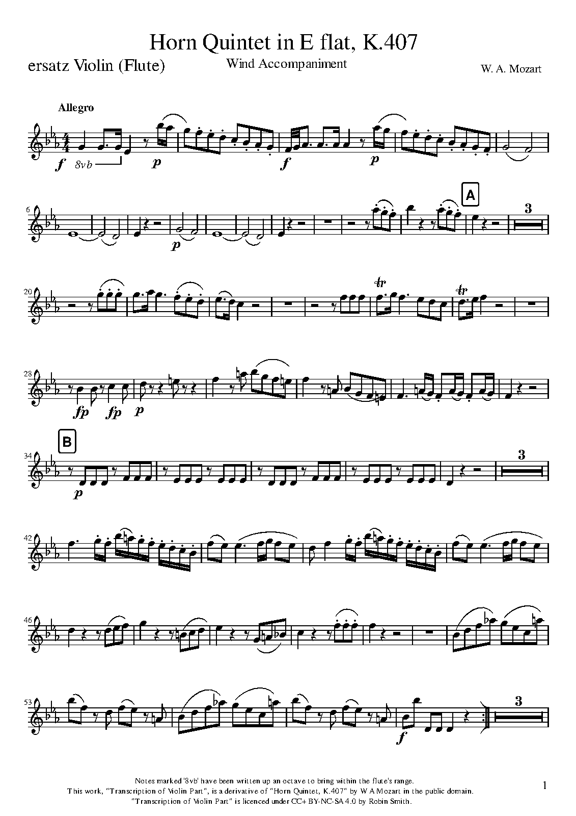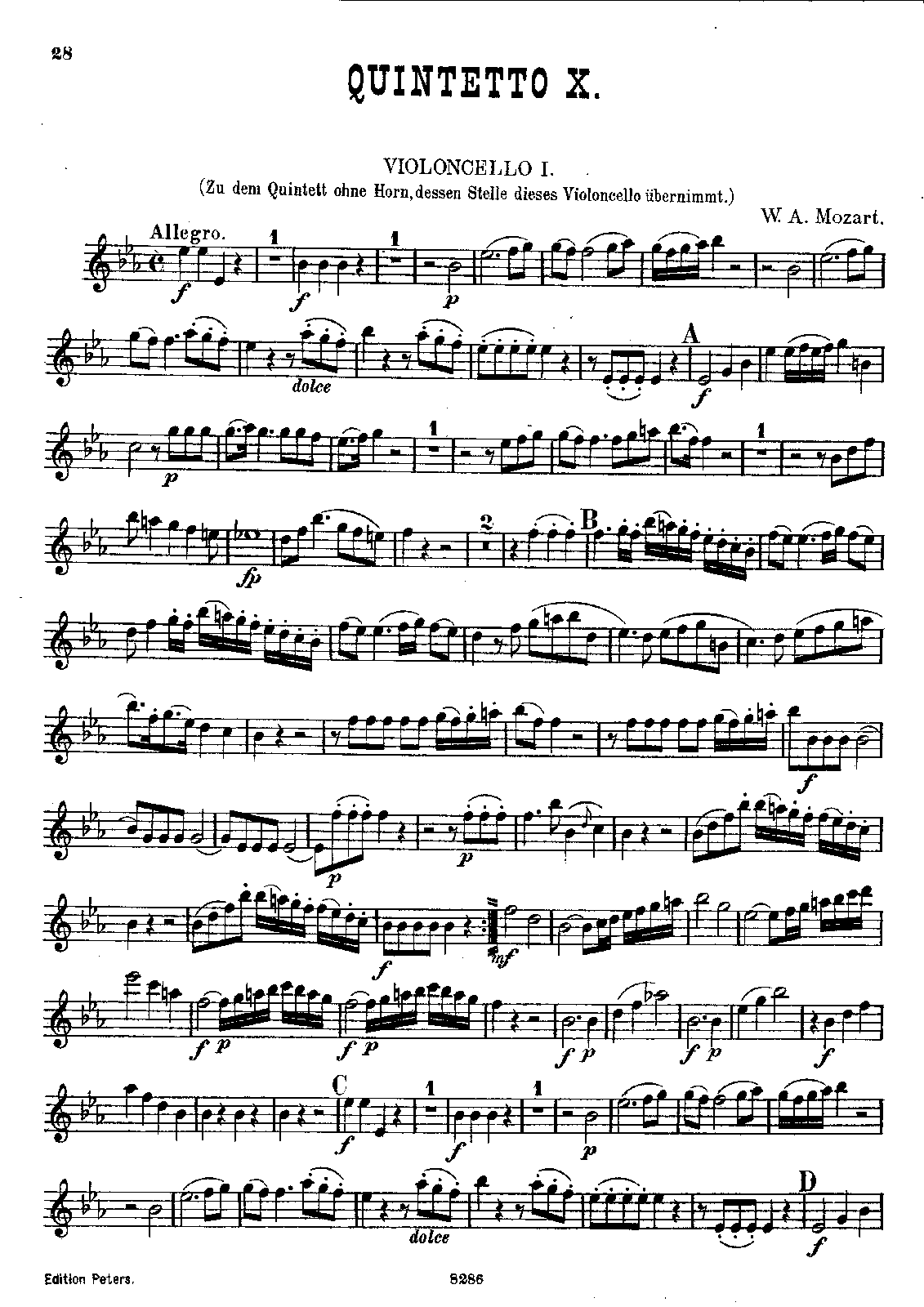 Misc. Notes This is the horn part, written in the cello treble clef, an octave above the actual sounds. It could be played by a third viola. Einstein describes the Andante as 'a deeply felt piece, a little love duet between horn and violin'.