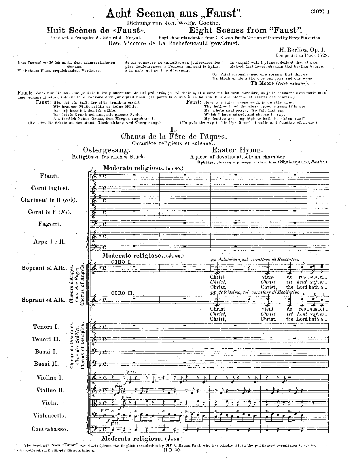 Assigned the first number in his œuvre, the work was subsequently withdrawn by Berlioz in November 1829 despite paying for its publication in April that year. Publication History