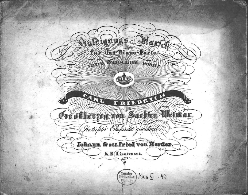 | Dedication | Carl Friedrich, Grossherzog von Sachsen-Weimar (reigned 1828-1853) |