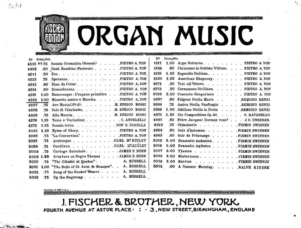 Publisher. Info. New York: J. Fischer & Bro., 1918. Plate J.F. & B. 4516-7