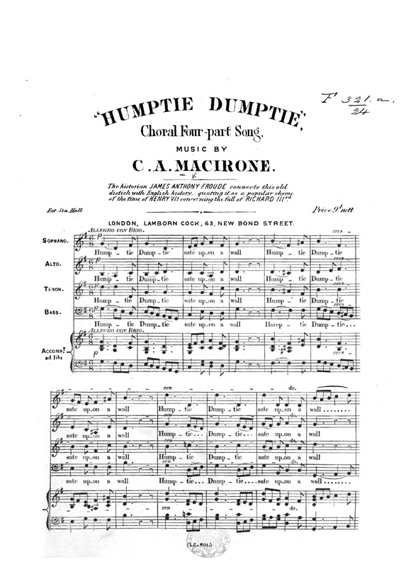| Alternative. Title | "Humptie Dumptie", Choral Four-part Song |