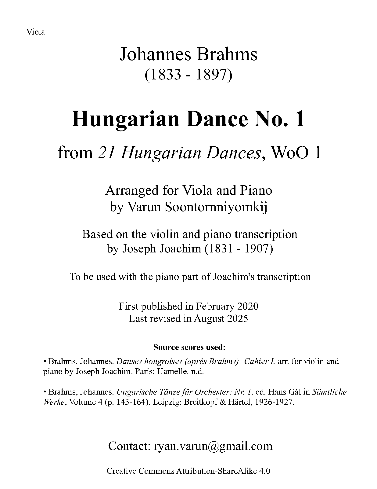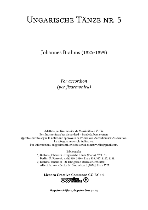21 Hungarian Dances (Piano), WoO 1 (Brahms, Johannes)