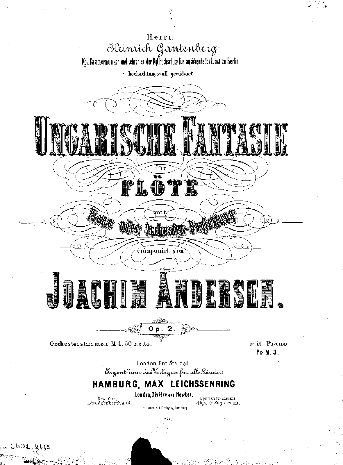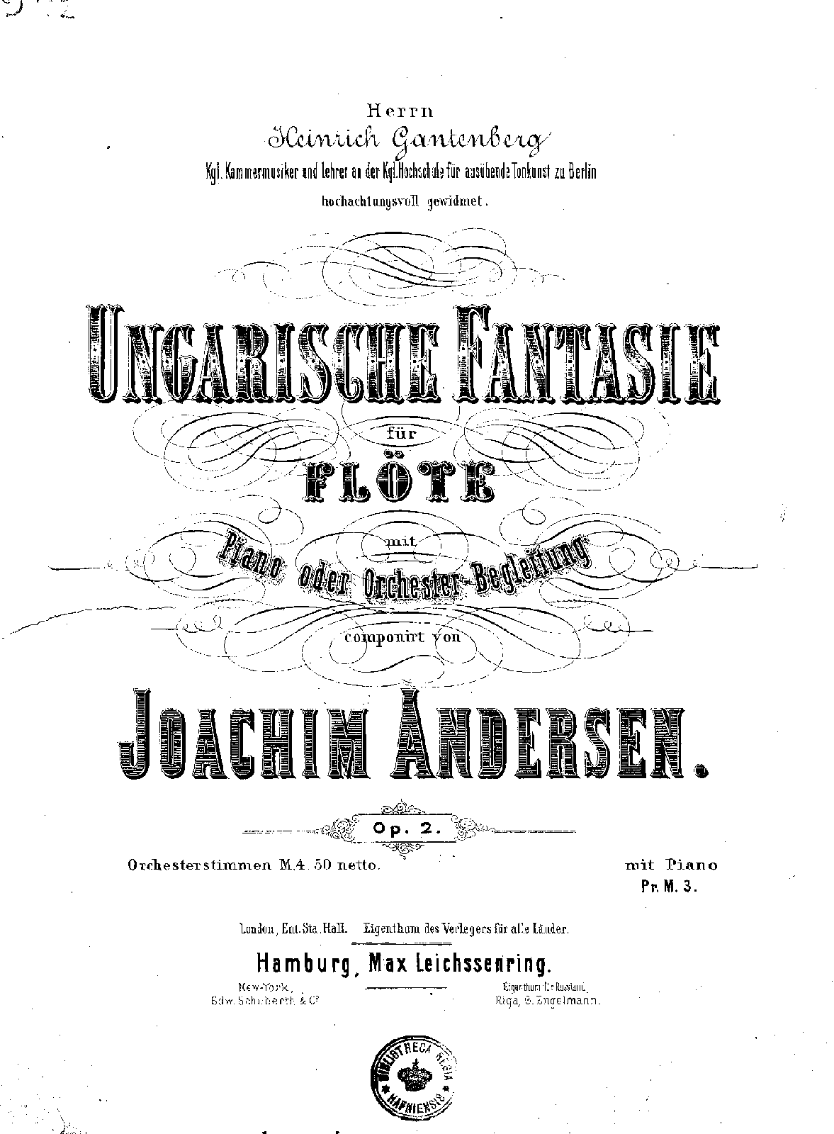 | Dedication | Herrn Heinrich Gantenberg, Kgl. Kammermusiker und Lehrer an der Kgl. Hochschule für ausübende Tonkunst zu Berlin, hochachtungsvoll gewidmet |
