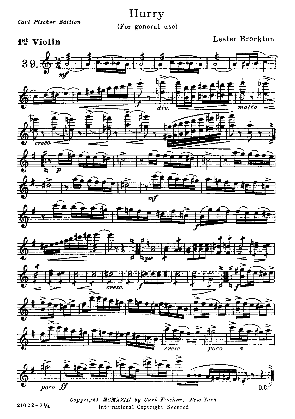 | Extra Information | Intended for use as accompaniment for silent movies. Published under the pseudonym Lester Brockton. |