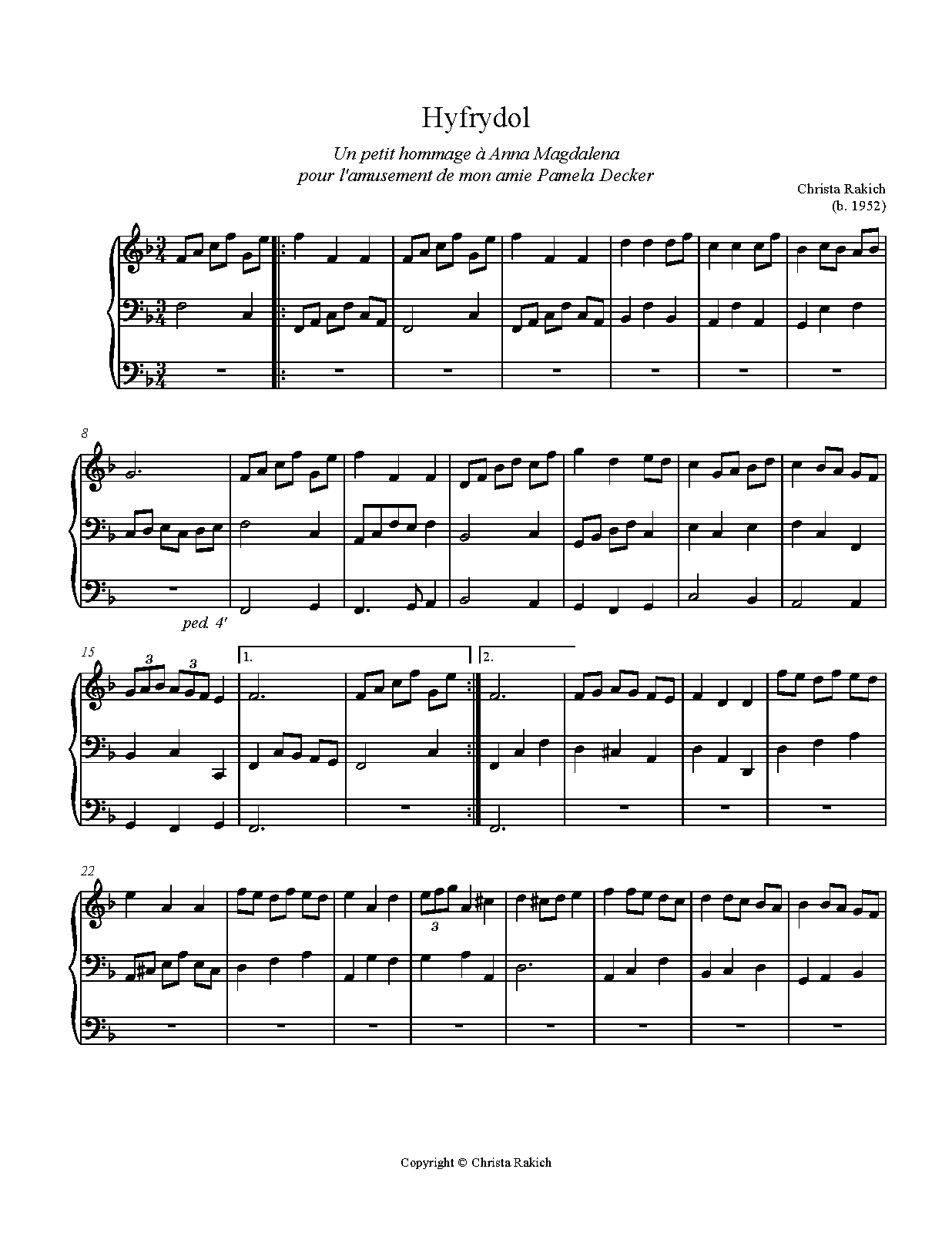 | Extra Information | a setting of the hymn tune 'Hyfrydol' using parts of a Minuet from the Notebook for Anna Magdalena Bach (1725) |